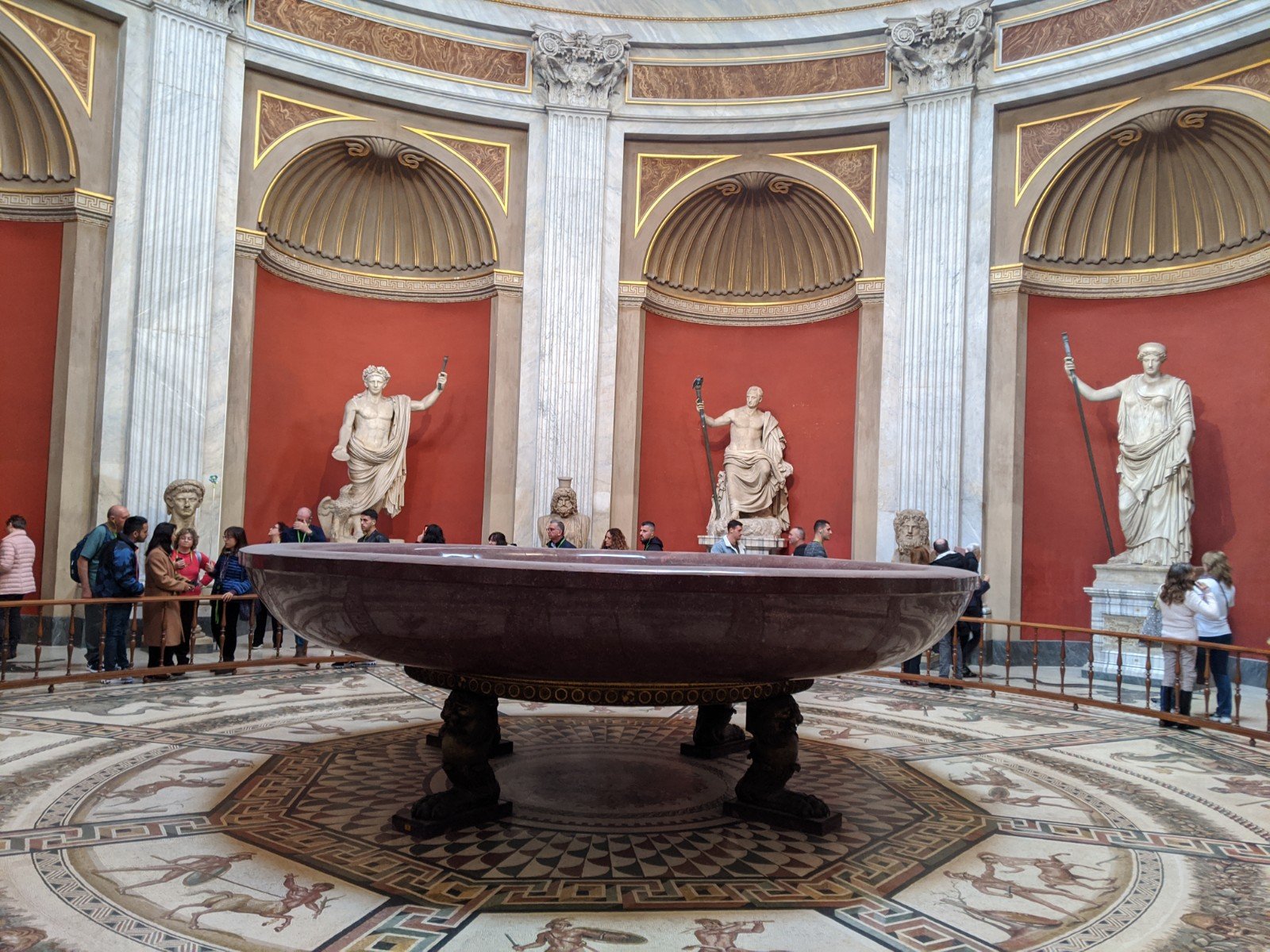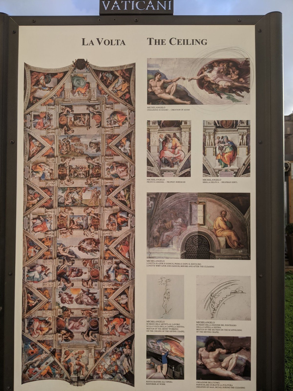 At the end of the museum is the Sistine Chapel. The ceiling and walls were painted by Michaelangelo. I think they were really pretty and unusual because the people looked like they could just walk out of the paintings. They looked 3D. We don’t have pictures from there because you weren’t allowed to take pictures. If you really liked something, you could buy a picture of it from the gift shop.