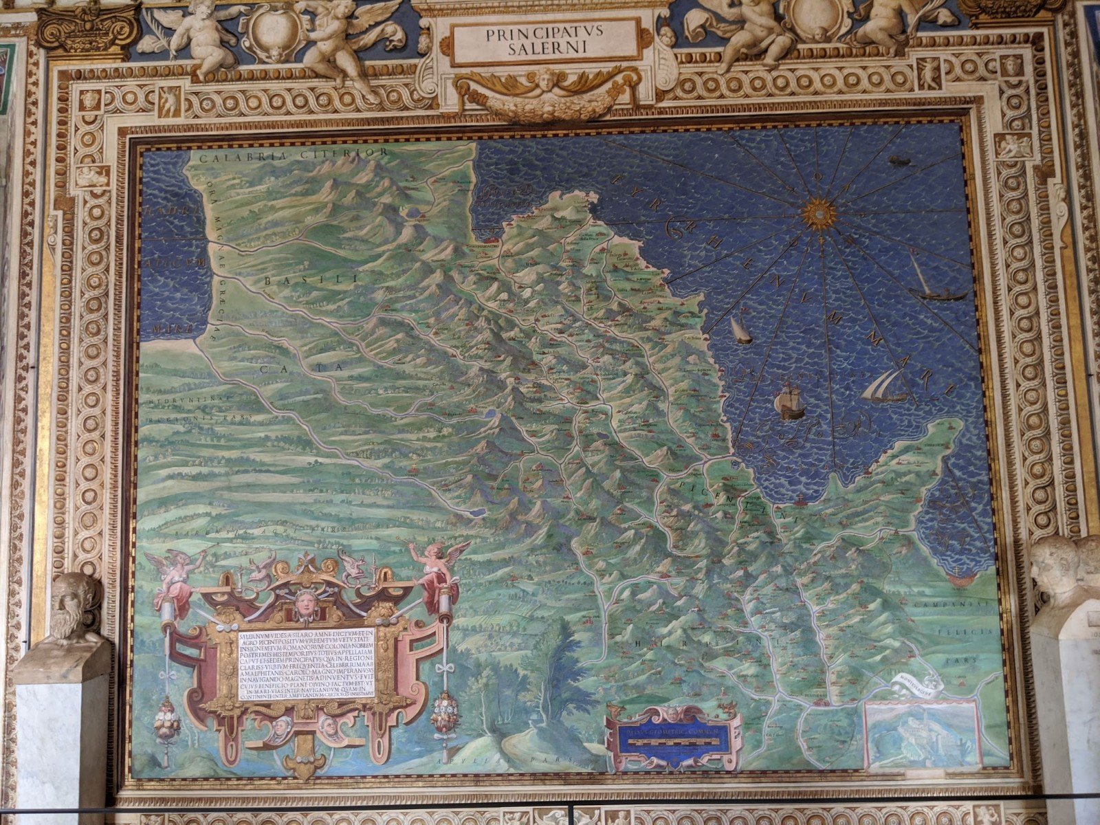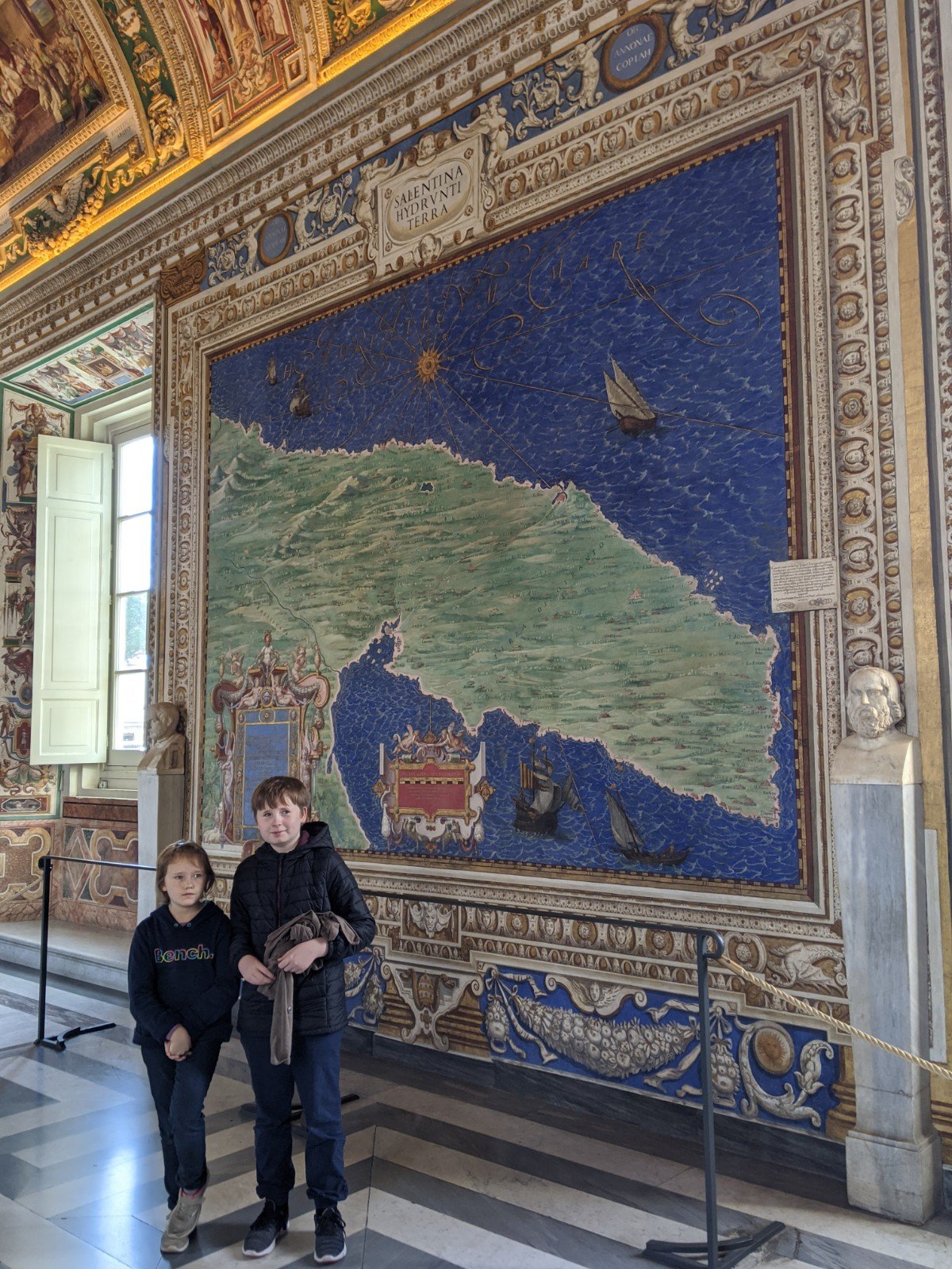 The map room was really interesting. We liked looking at all the maps of the different areas in Italy, especially the ones we’ve been to. One of the best things was that the maps weren’t all made with north at the top. You had to really look at the compass rose to see which way it was turned.