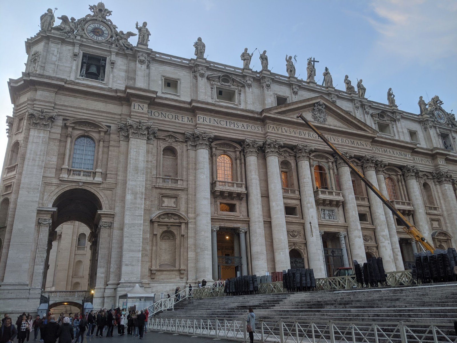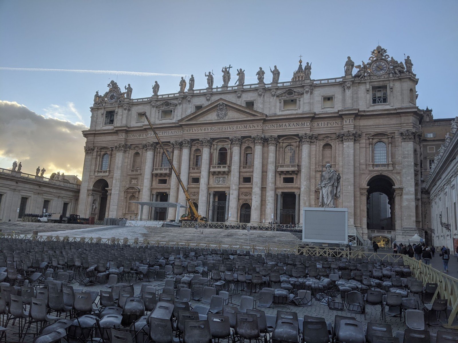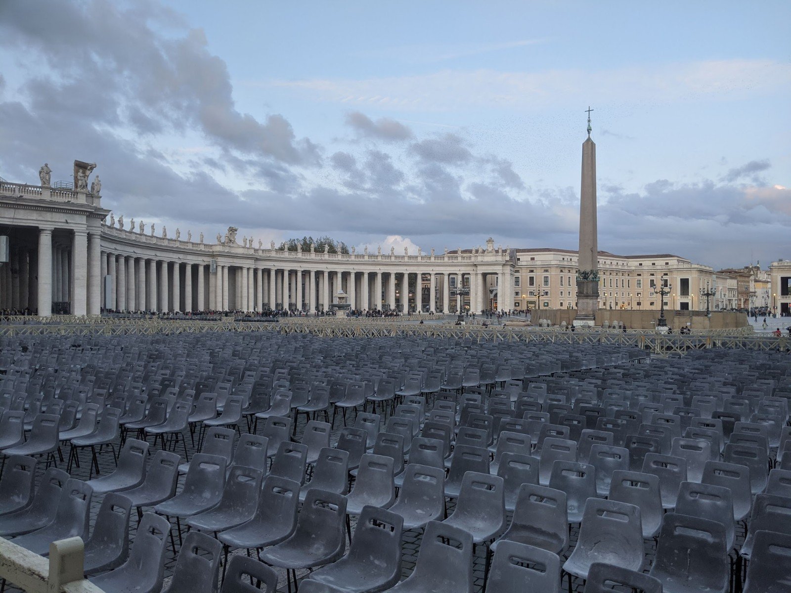 Outside in the big square, there were guards and hundreds of chairs set up for when the Pope makes speeches.