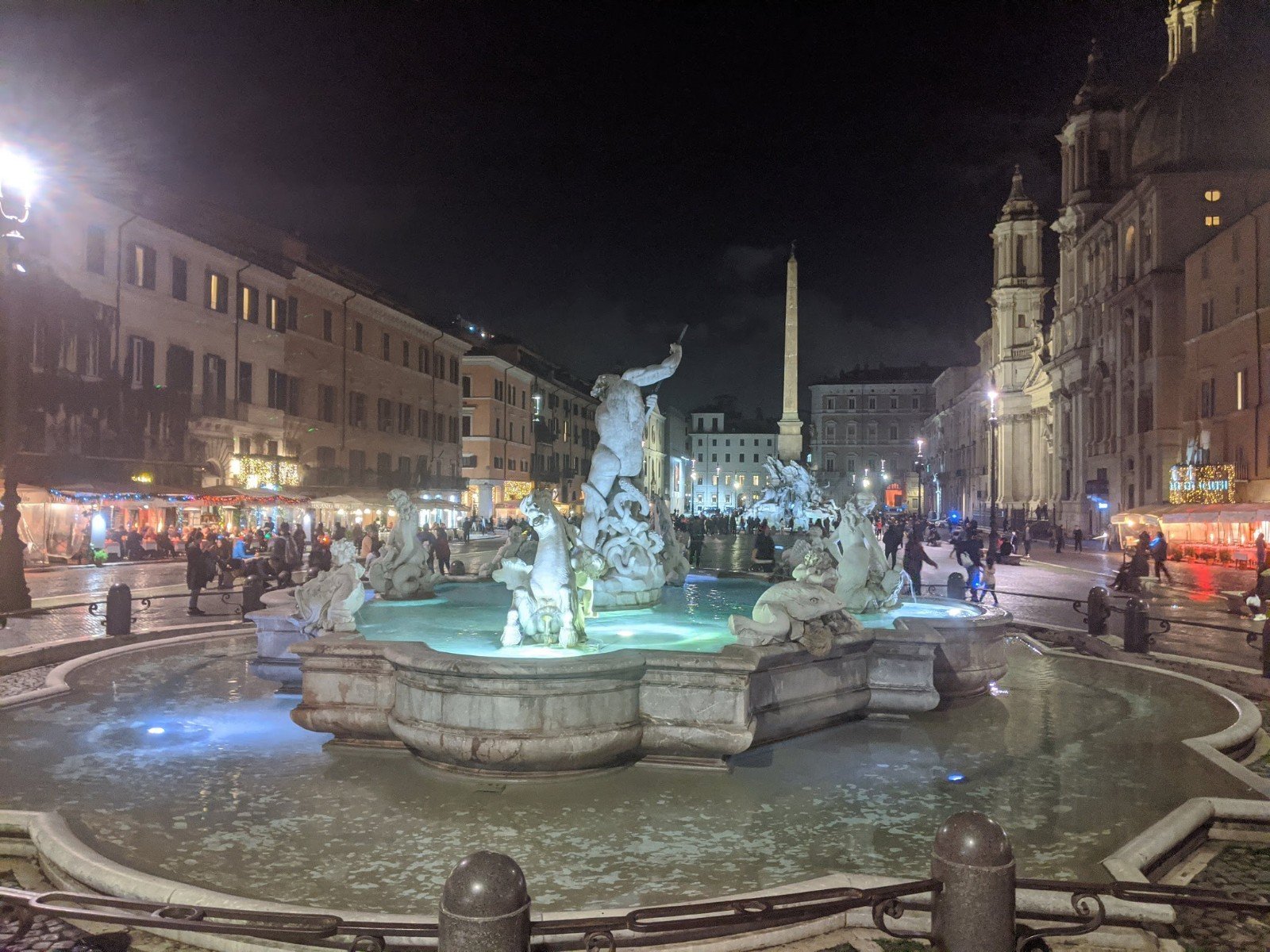 Then we walked to place with lots of benches and three fountains, called Piazza Navona. While we were walking there, we found a yummy place for dinner that served fresh pasta. It was like a fast food place but extra tasty.