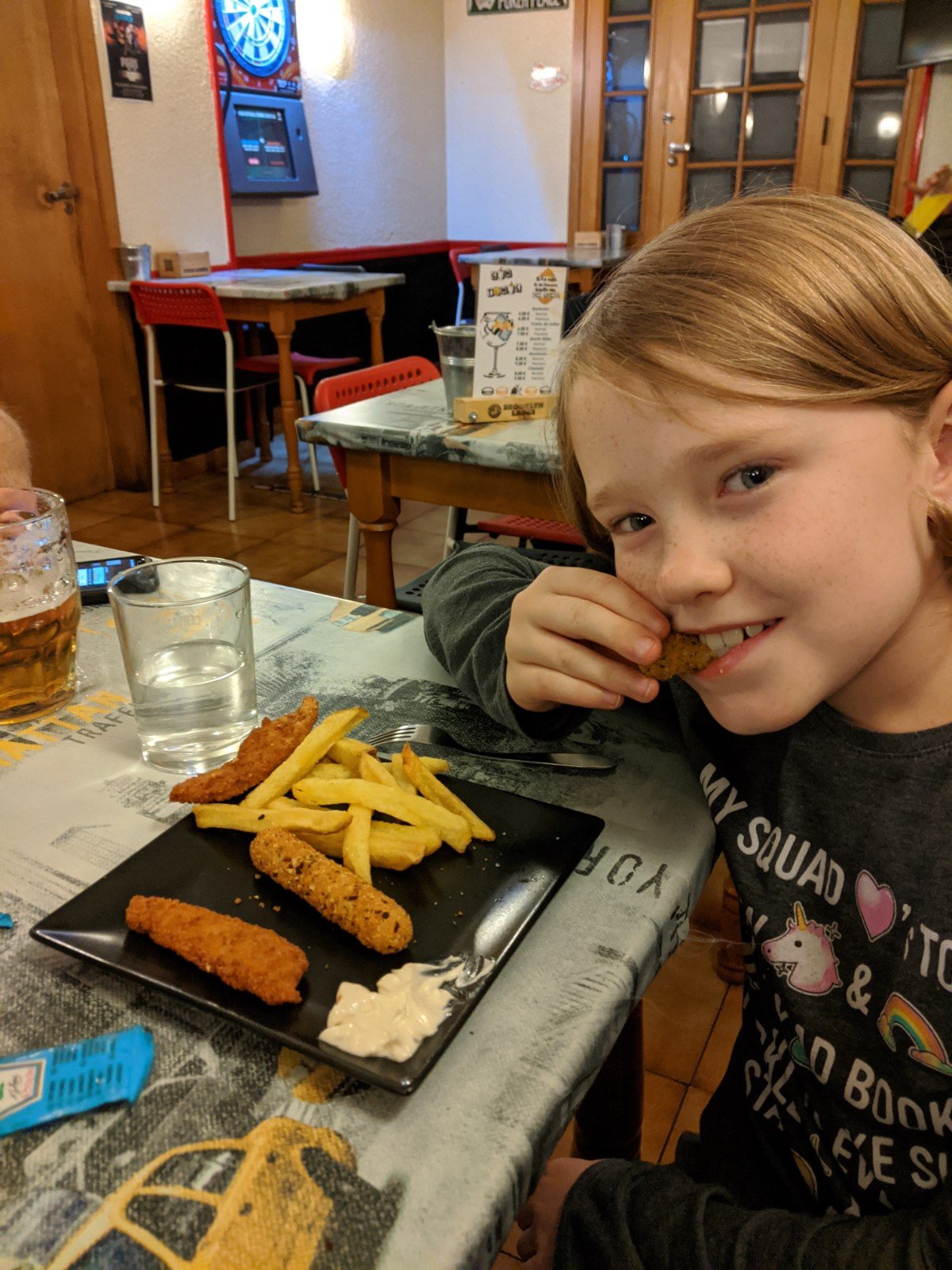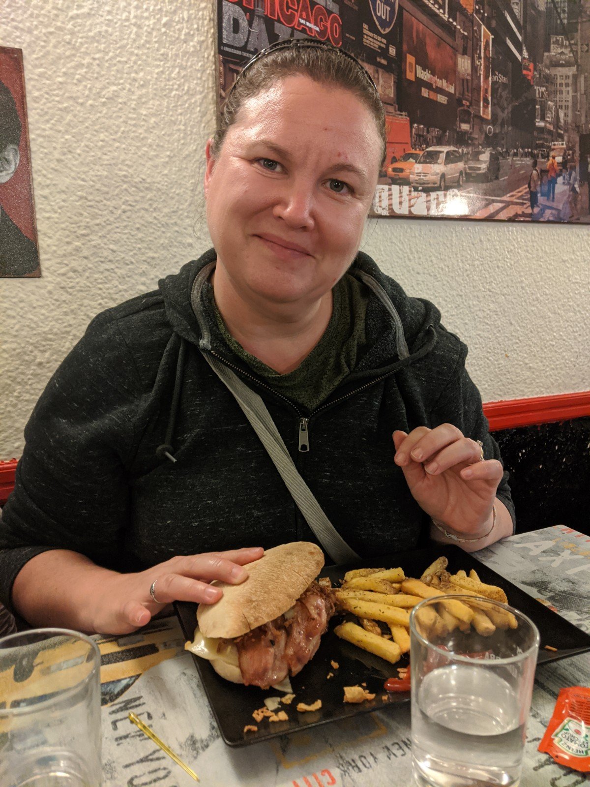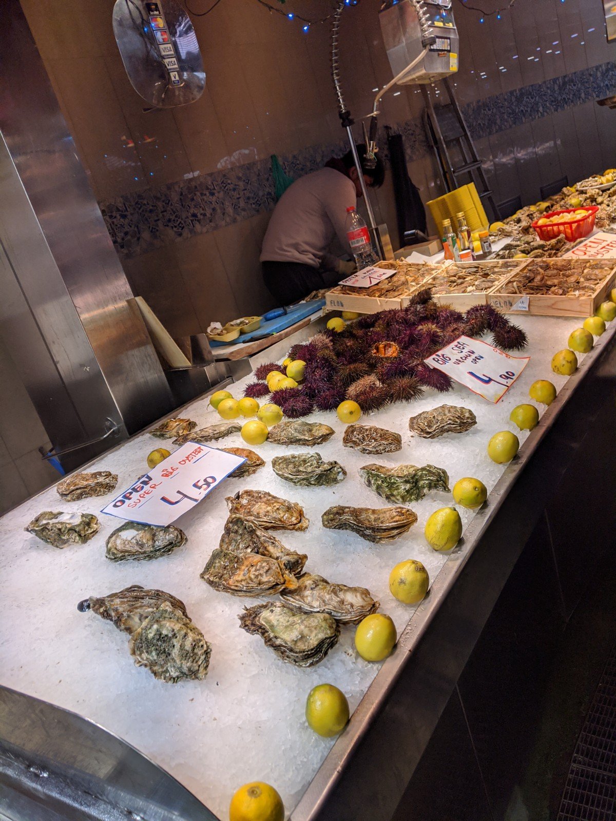 Today we took three trains to Barcelona. The first was from Nice to Marseilles, Marseilles to Nimes, and then a speed train to Barcelona. We then took a cab to our AirBnB. Because it was already evening, we decided to have dinner at a local restaurant called As de Pikas. It was an American-style burger joint that was very popular with the locals. The food was fantastic.