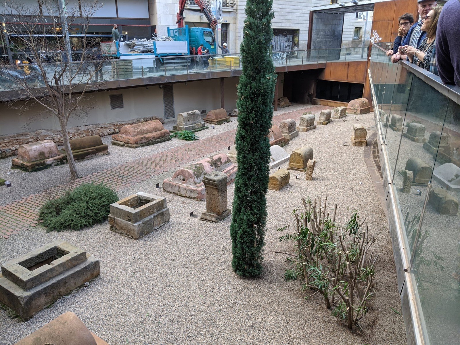 First he showed us the Roman tombs. There was a red brick road with tombs along it. He told us that they didn’t have much space for the tombs and didn’t want them inside the city, so they put them beside their road that connected Barcelona to other cities. The ancient Roman road was actually underneath the modern city that is there today.