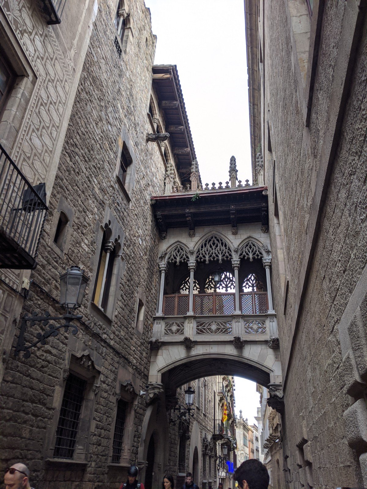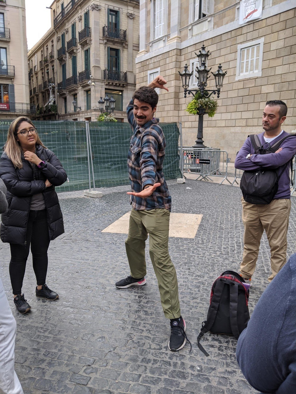 Today we were going to have a free walking tour, so first we met up at Placa de Catalunya, the main square of the city. We found our group by looking for people with purple umbrellas. Our tour guide was named Gianfranco (Franco, for short). He was awesome and so dramatic!