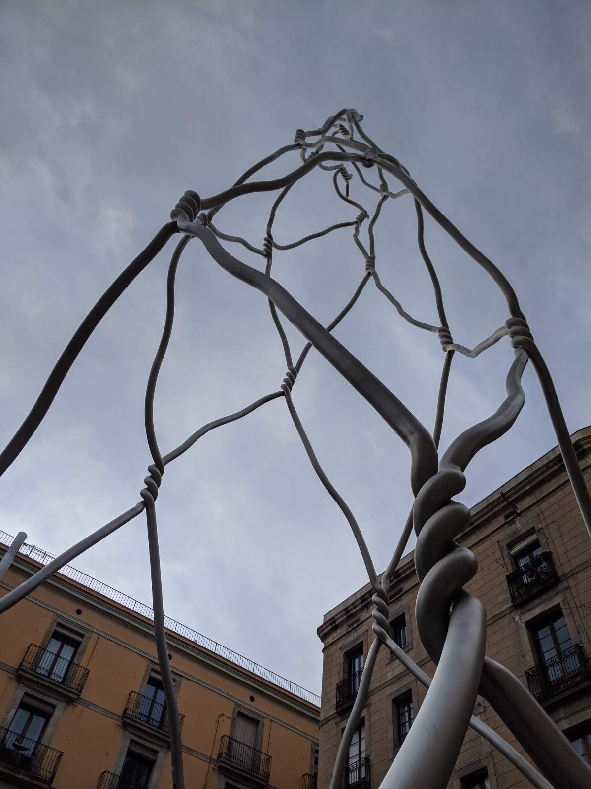 Then we went to an art sculpture. It was very tall, and it looked like wire. I wanted to climb up it. then Gianfranco told us that the sculpture represents a sport some Spanish people do, called Castells. On special occasions, a team of people make human castles. They climb on each other and make a big tower and then a 6 or 7 year old kid would climb up to the very top and hold up his 4 fingers to show that they are finished. The tallest one ever was 10 storeys of people high!