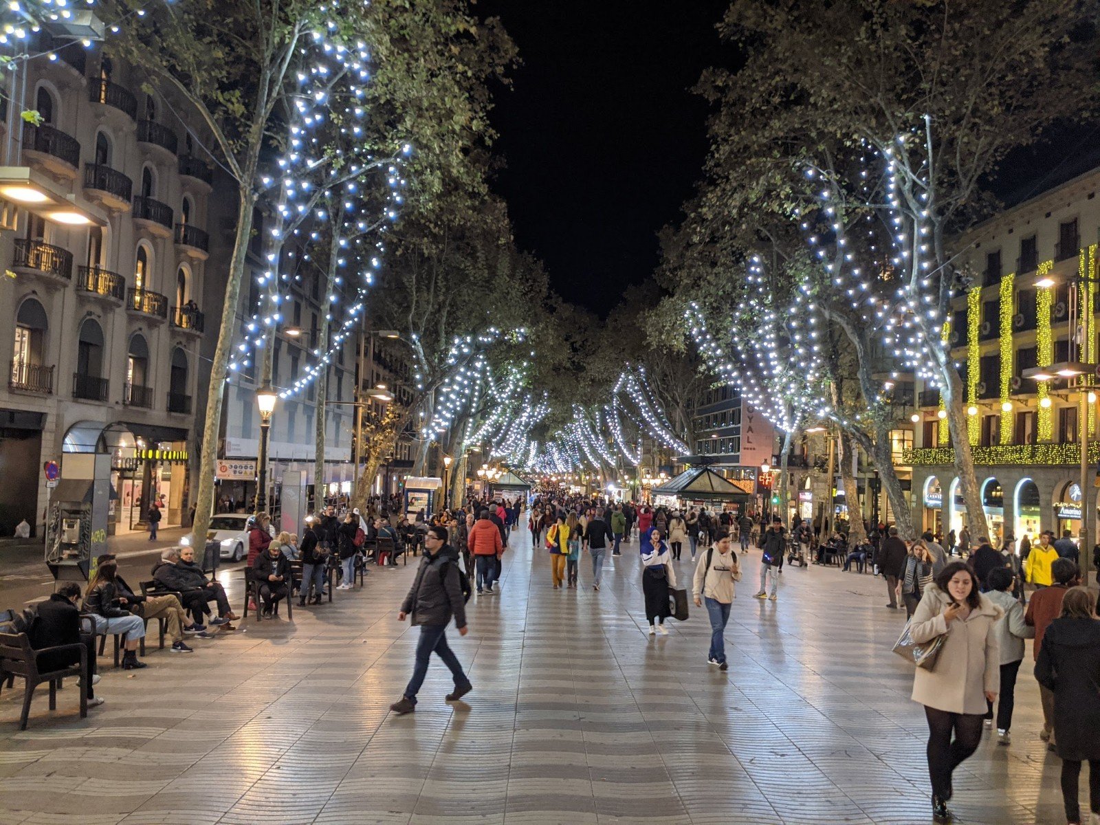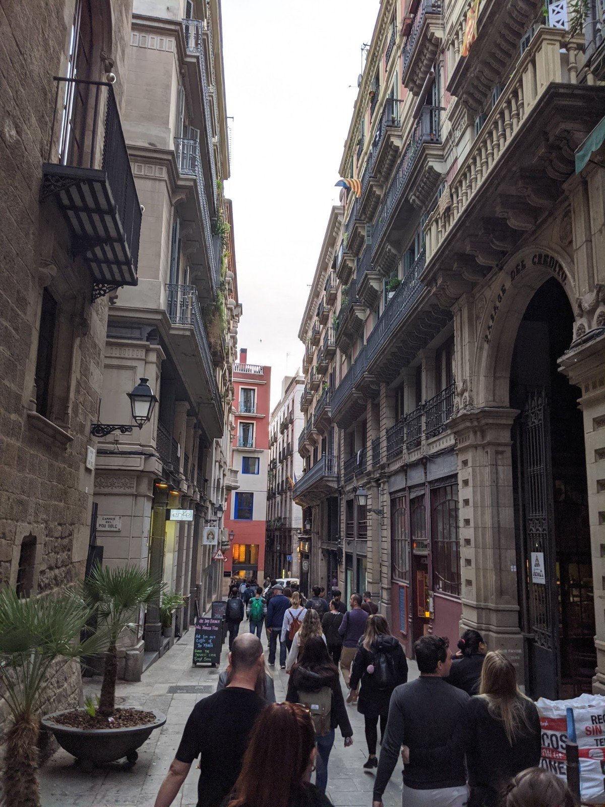 We left the market and stepped onto Las Ramblas, a big street with a walking path down the middle of it that led back to Placa de Catalunya.