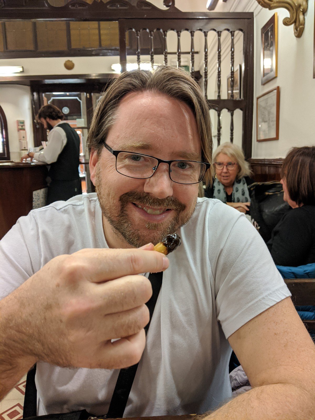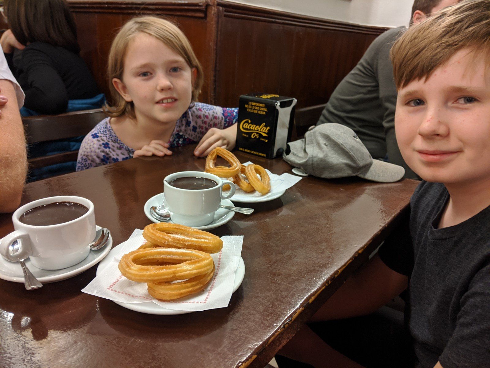 At the end of the tour, we walked to the churro place that Franco had told us about. We got some “Churros con chocolata”. Churros are kind of the donut of Spain and often come with a cup of drinking chocolate for dipping.