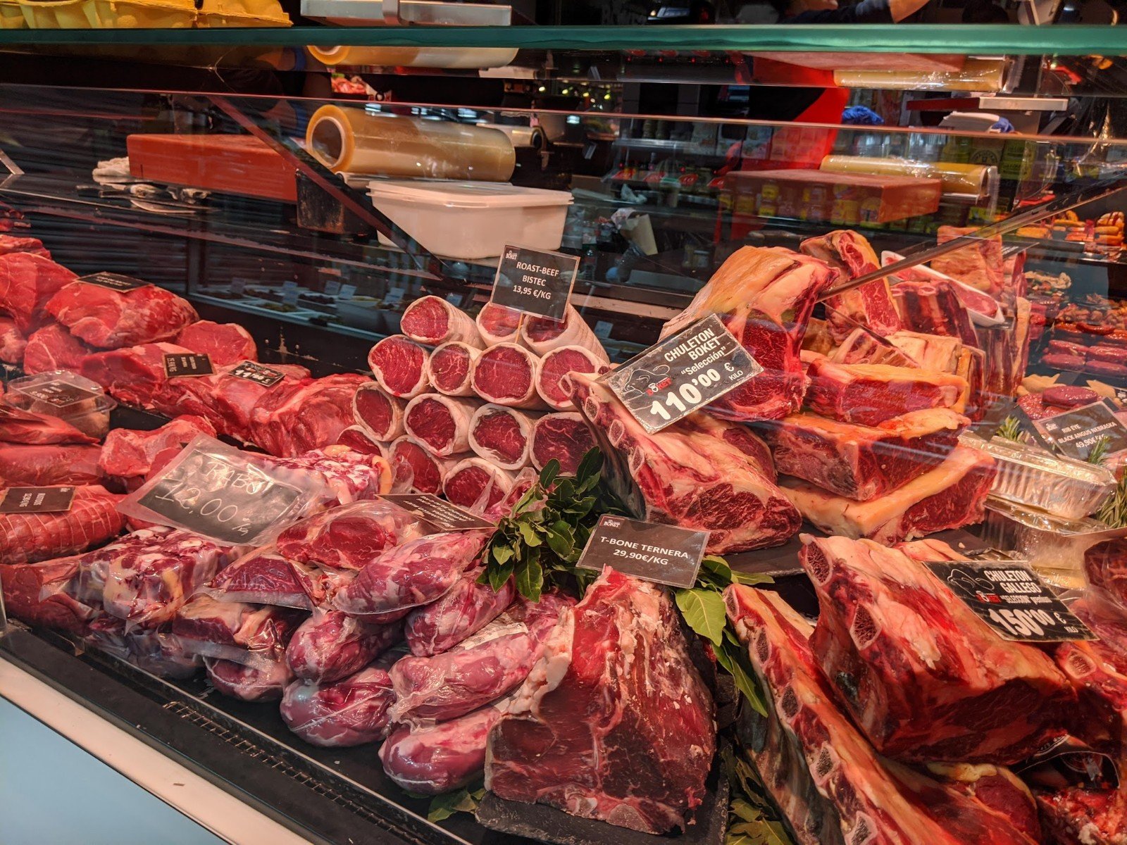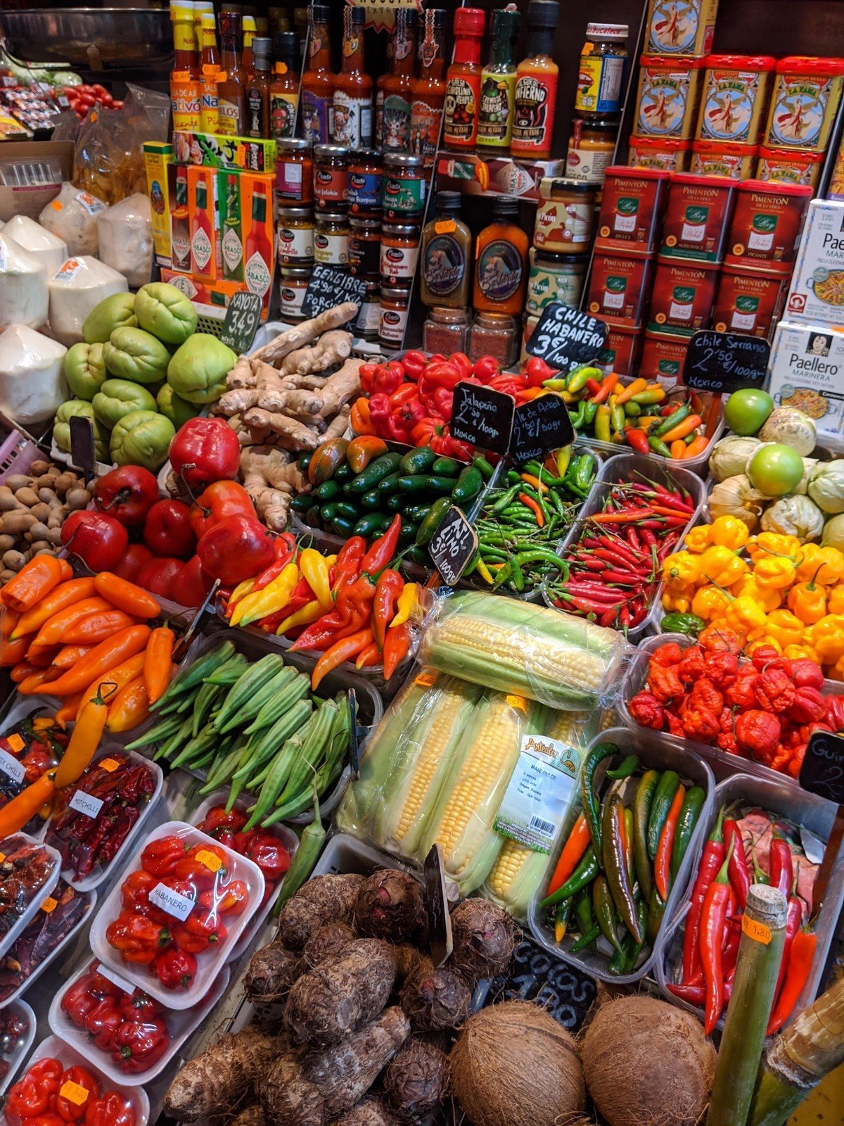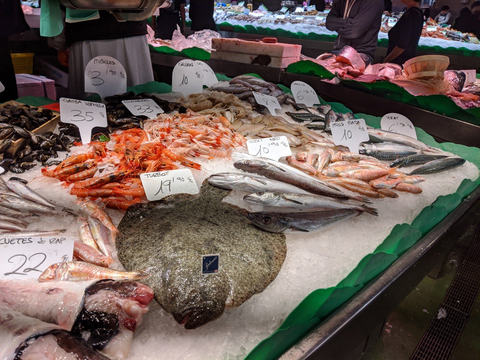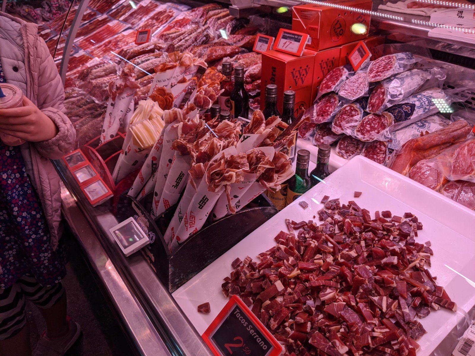 After that, we walked to a place called the Mercado de La Boqueria. The Mercado de La Boqueria is an open air market that sells most things you might need like fresh fruit juice and smoothies, meat, cheese, fruit and veggies, seafood, and spices. We tried some fruit juice and it was really good. There are so many different flavours to choose from and they are only €1.