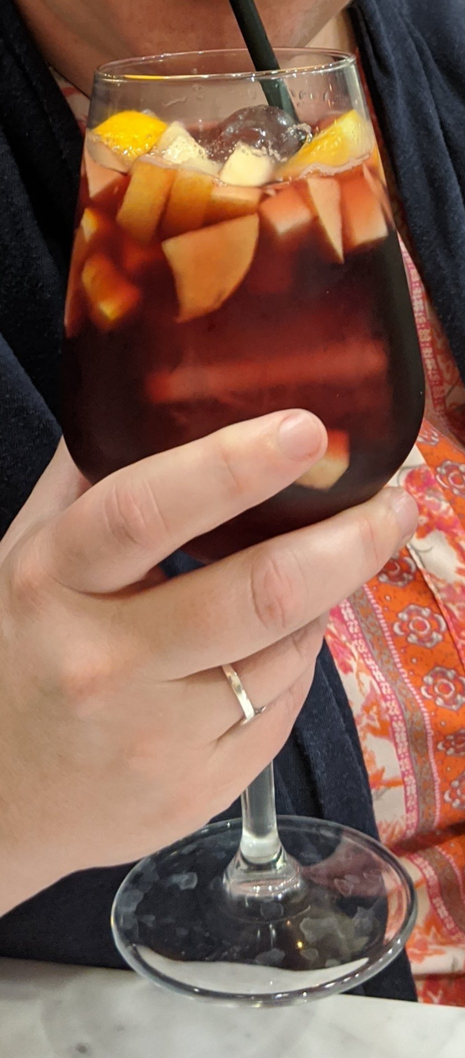 We had a break and Mom had a drink called Sangria. It is popular here. It is red wine with fruit cut up in it.