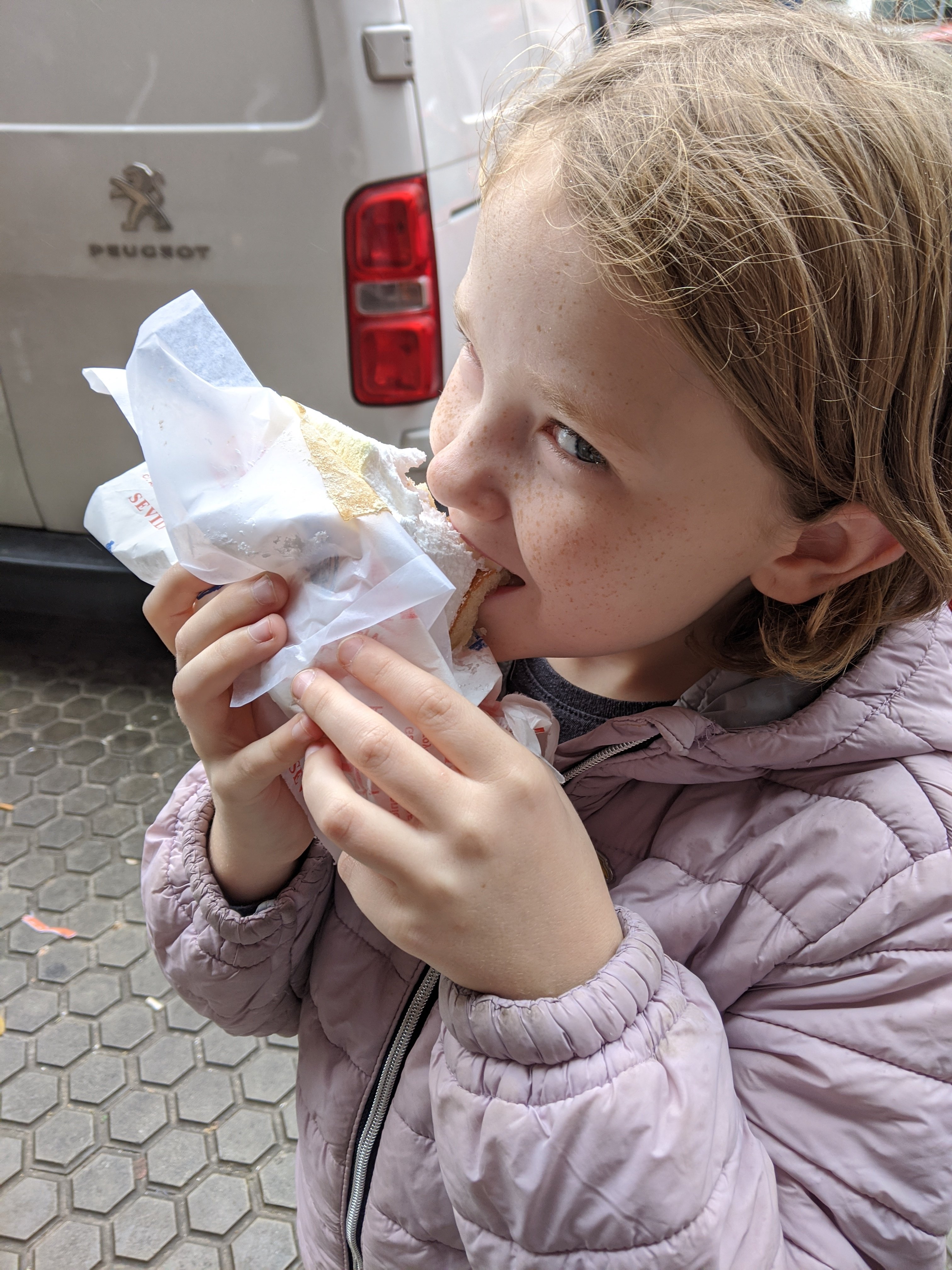 We found a really good café with some giant palmier cookies. We ended up getting two palmiers, one covered in chocolate and one with a cinnamon caramel topping, and a homemade marshmallow square (I can’t remember what it was called) that all tasted really good. We also found a grocery store, so we got some groceries for our AirBnB.