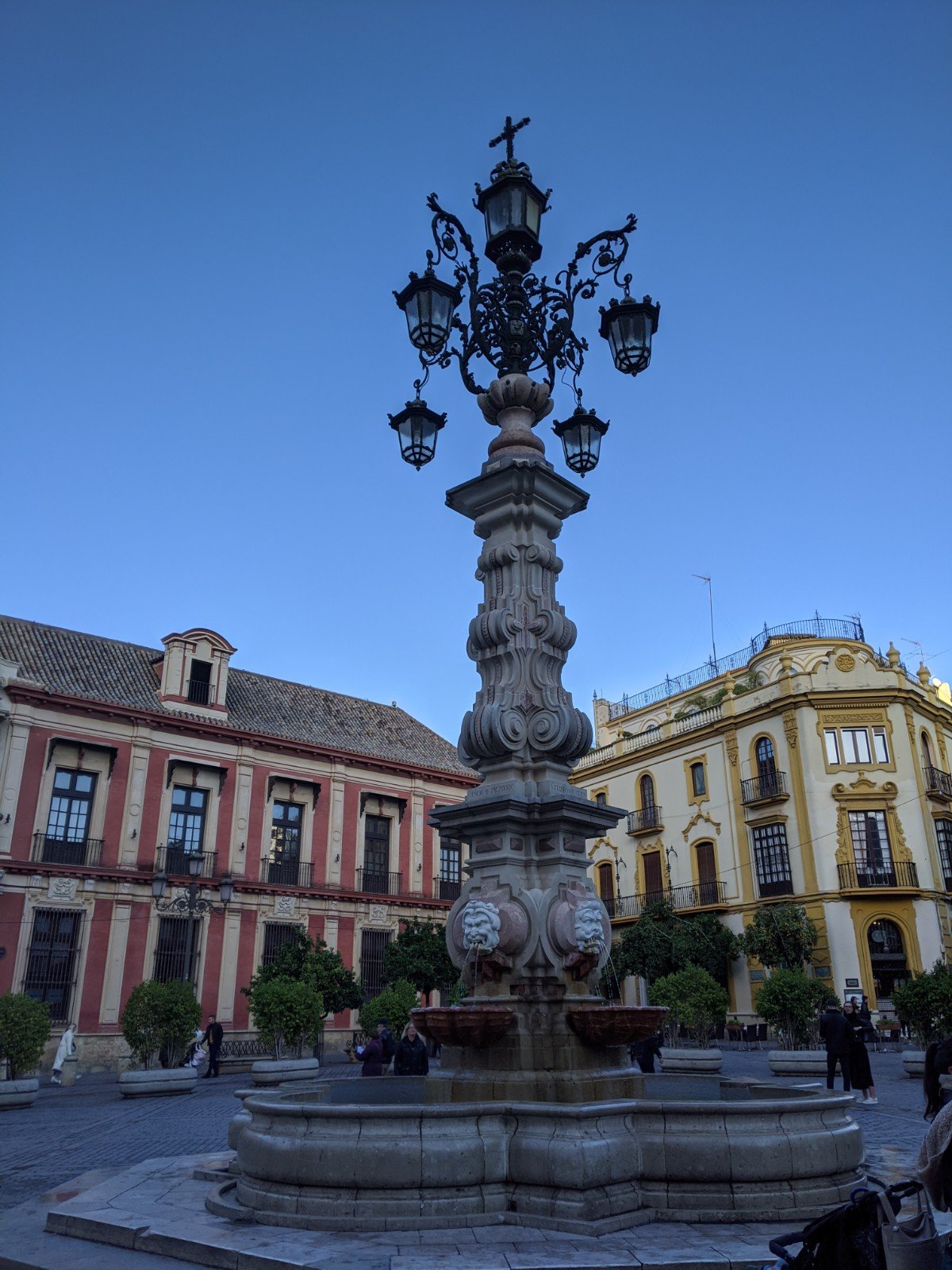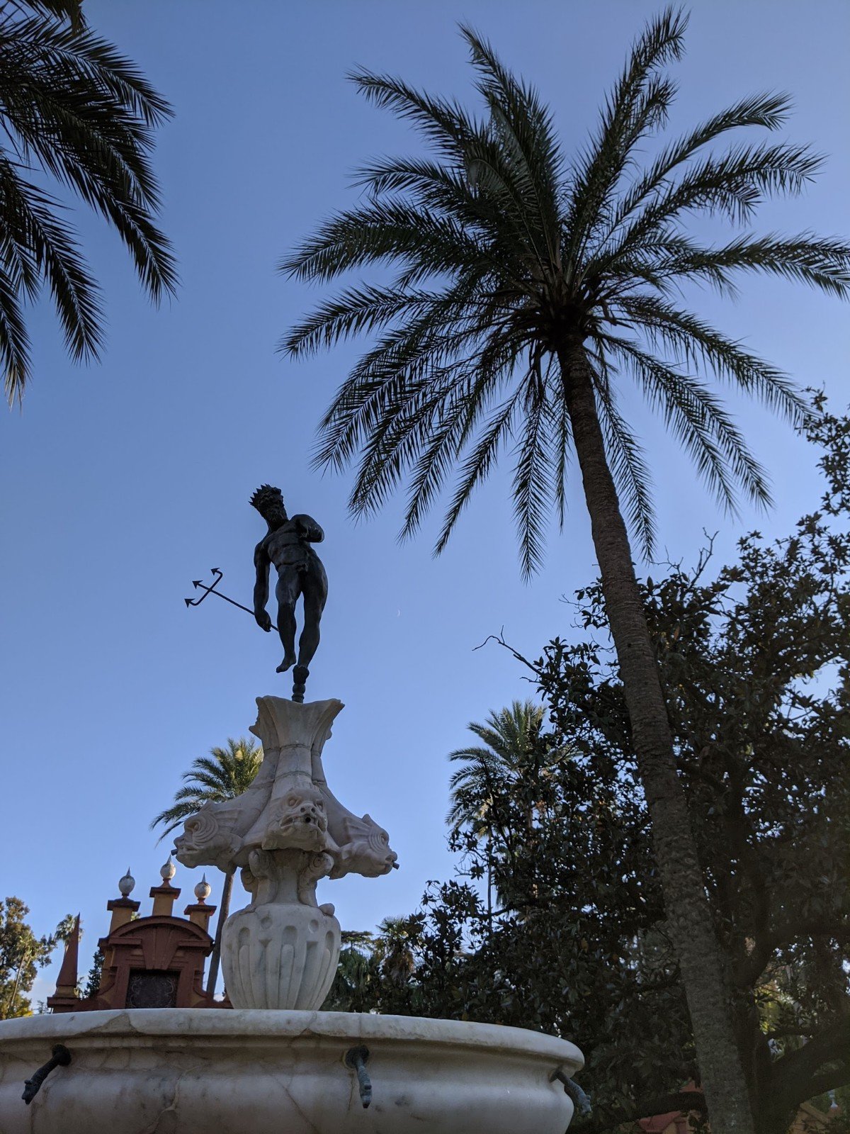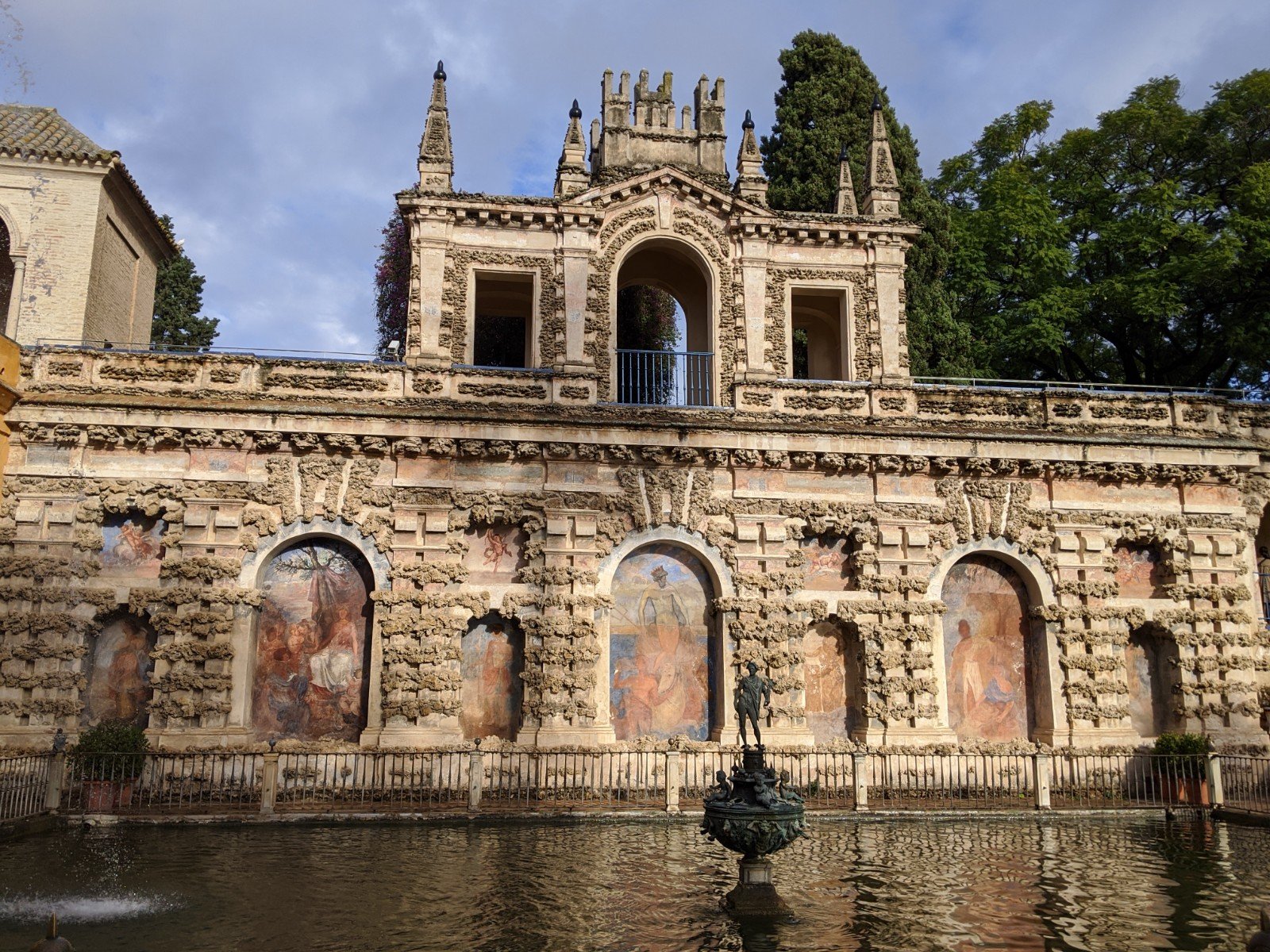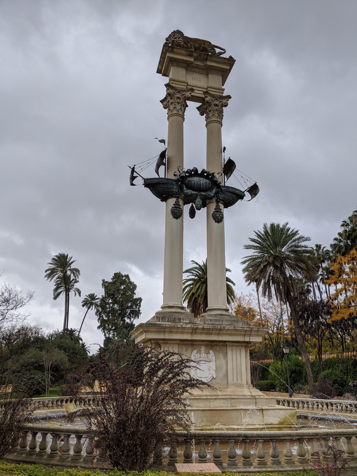 This is a fountain honouring Christopher Columbus. Sevilla is where he began his journey to the new world (and where he brought the gold and other riches).