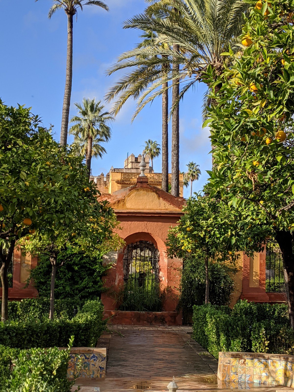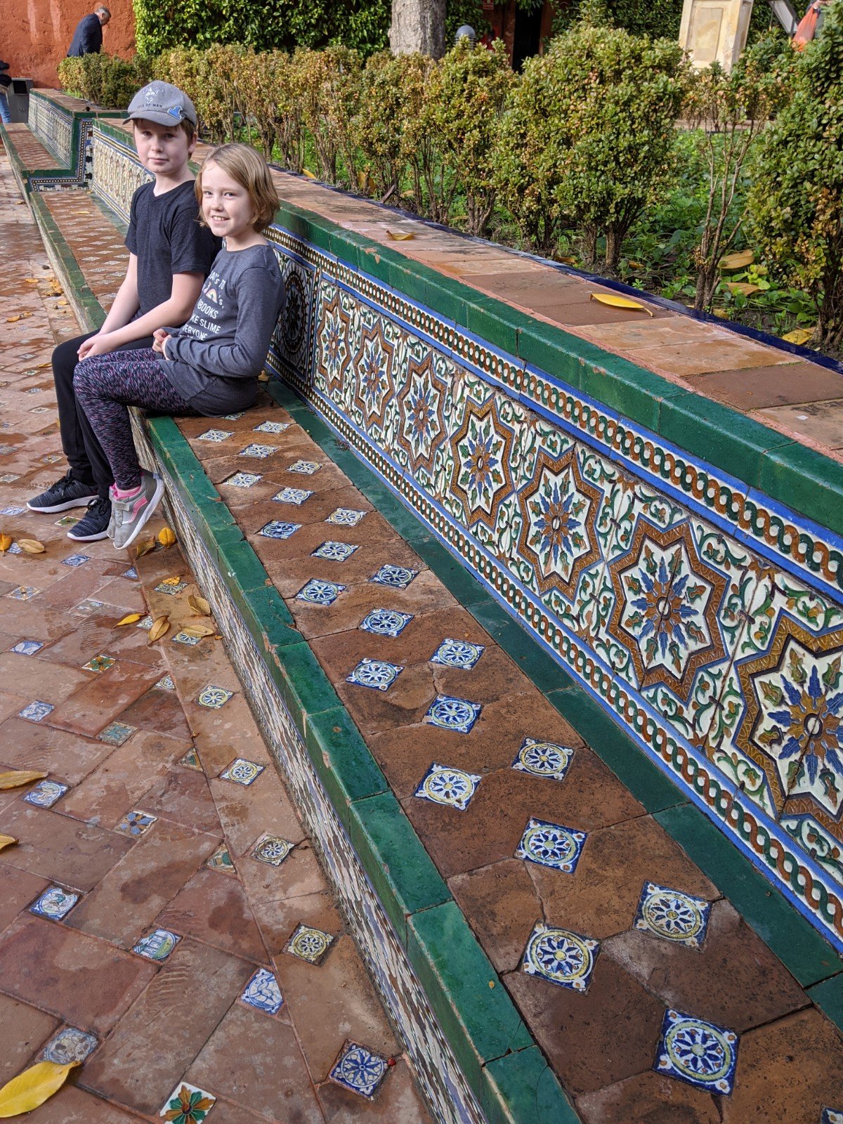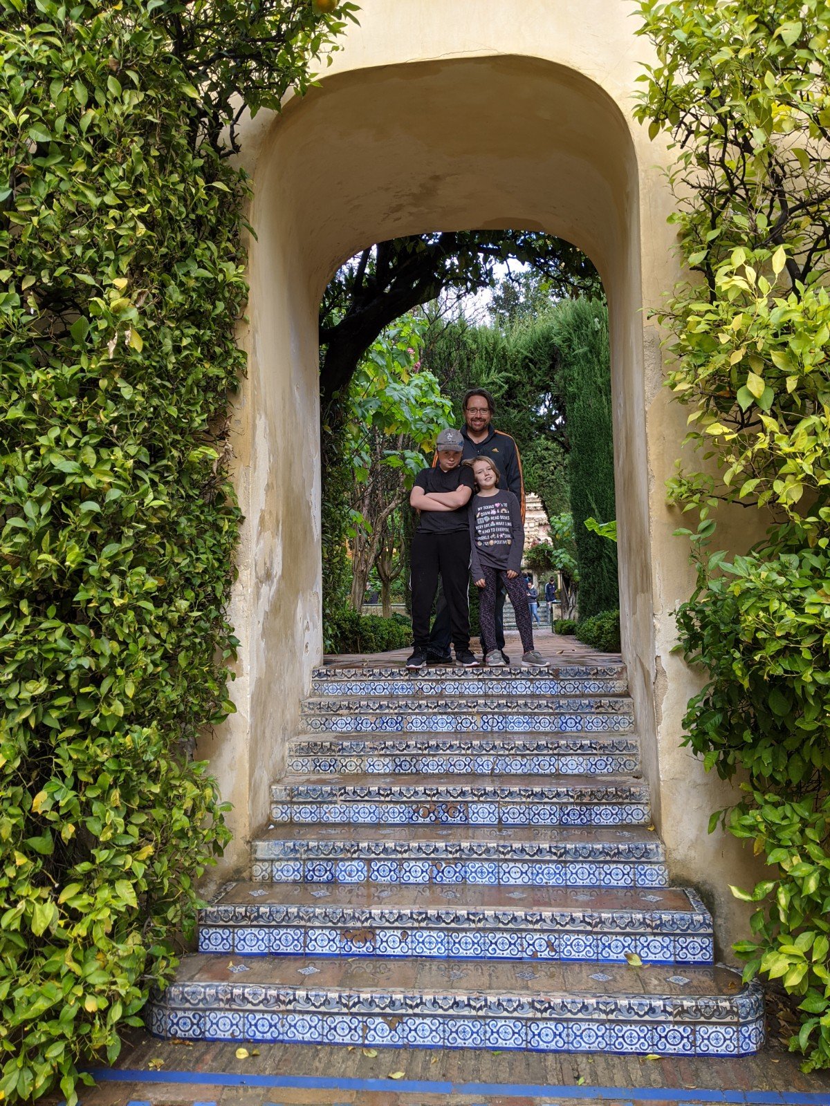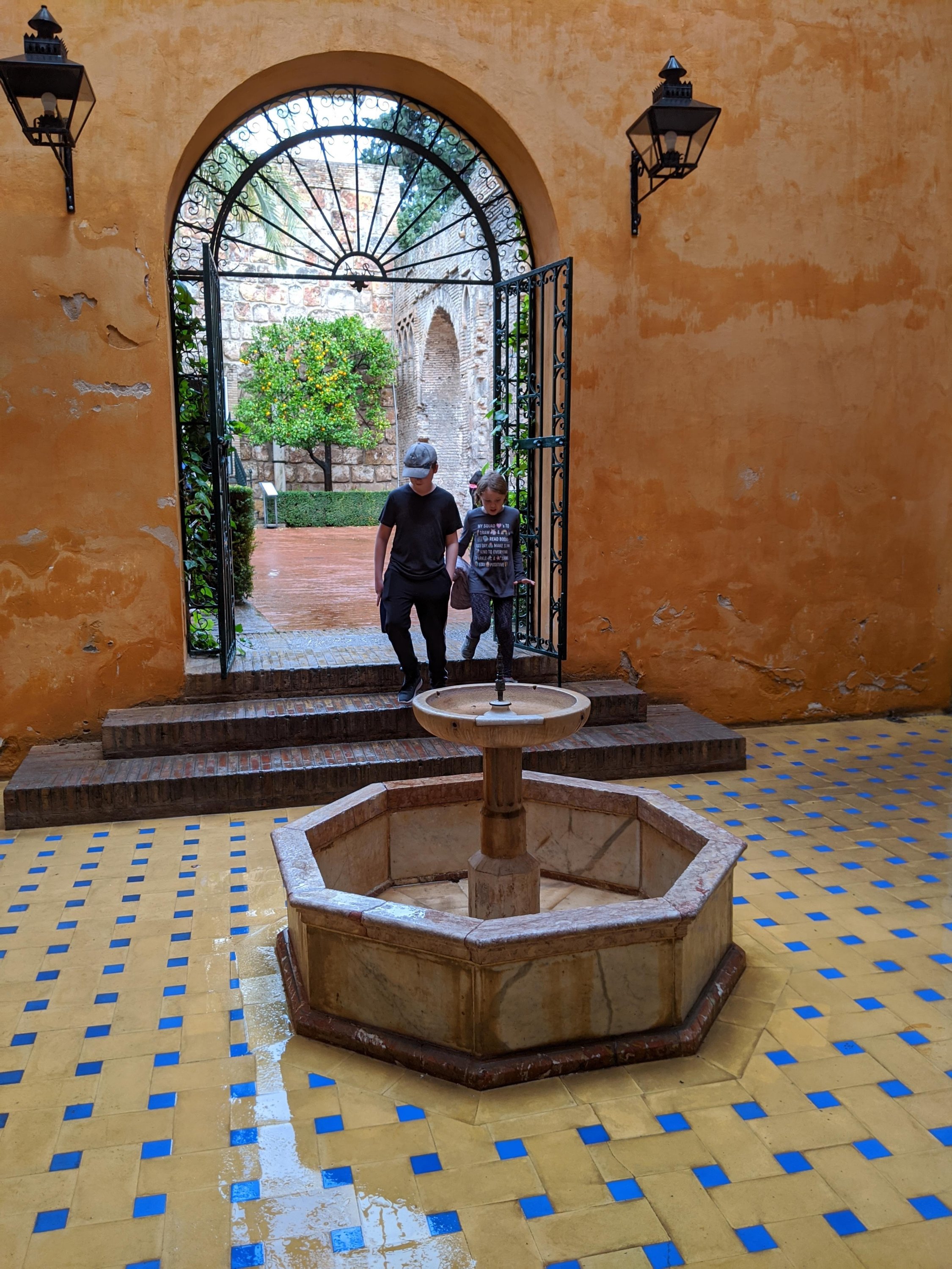 Then we finally got to Real Alcazar, a big palace with lots of buildings and gardens and parks. The palace is very old. It was originally built when Morocco had taken over Spain, so it doesn’t look like other palaces in Europe at all. There are lots of really fancy tiles everywhere. I really like the doorways and windows.