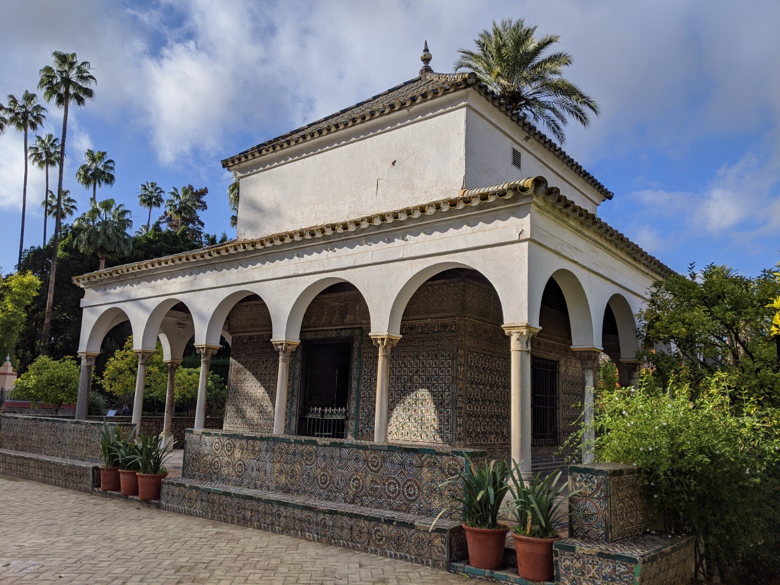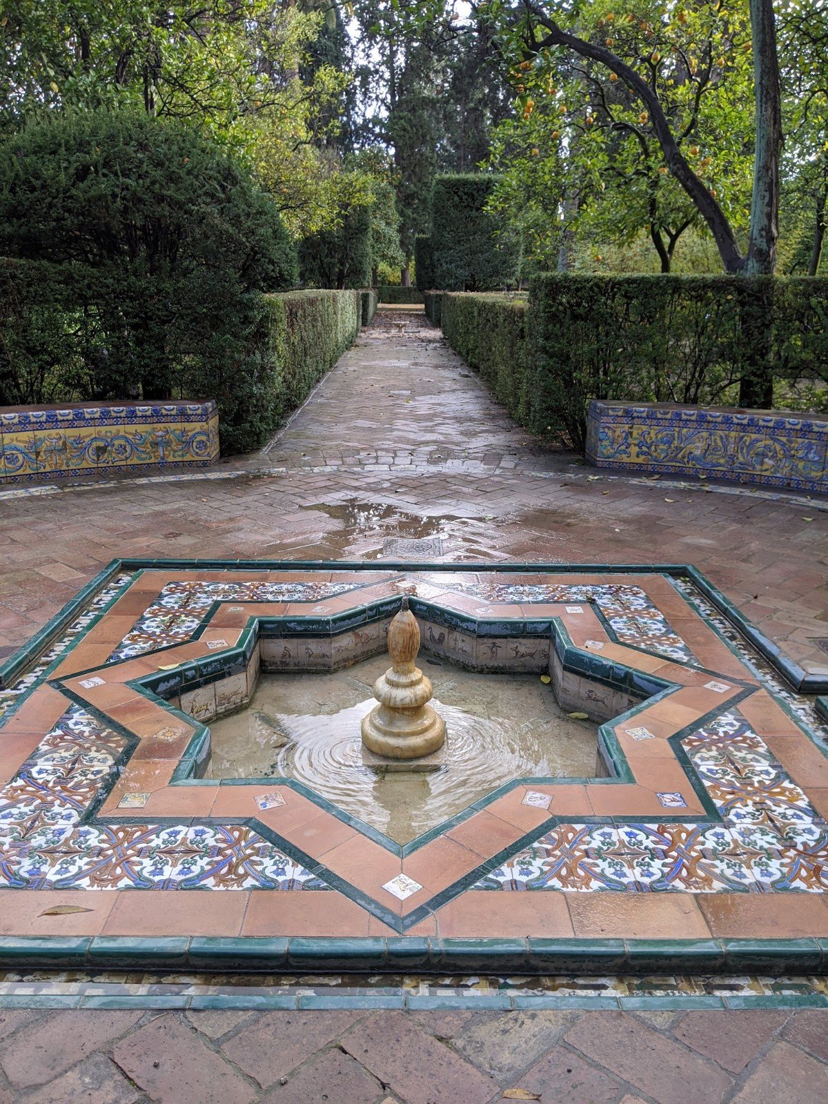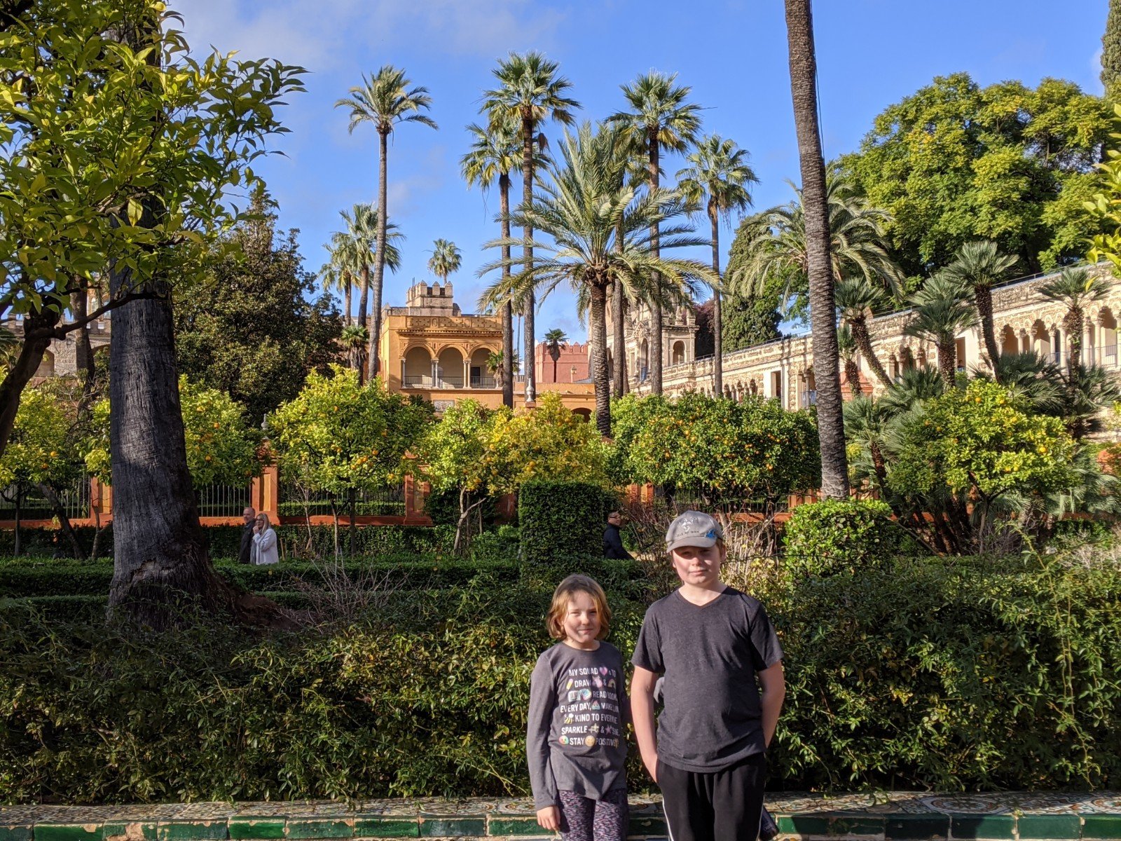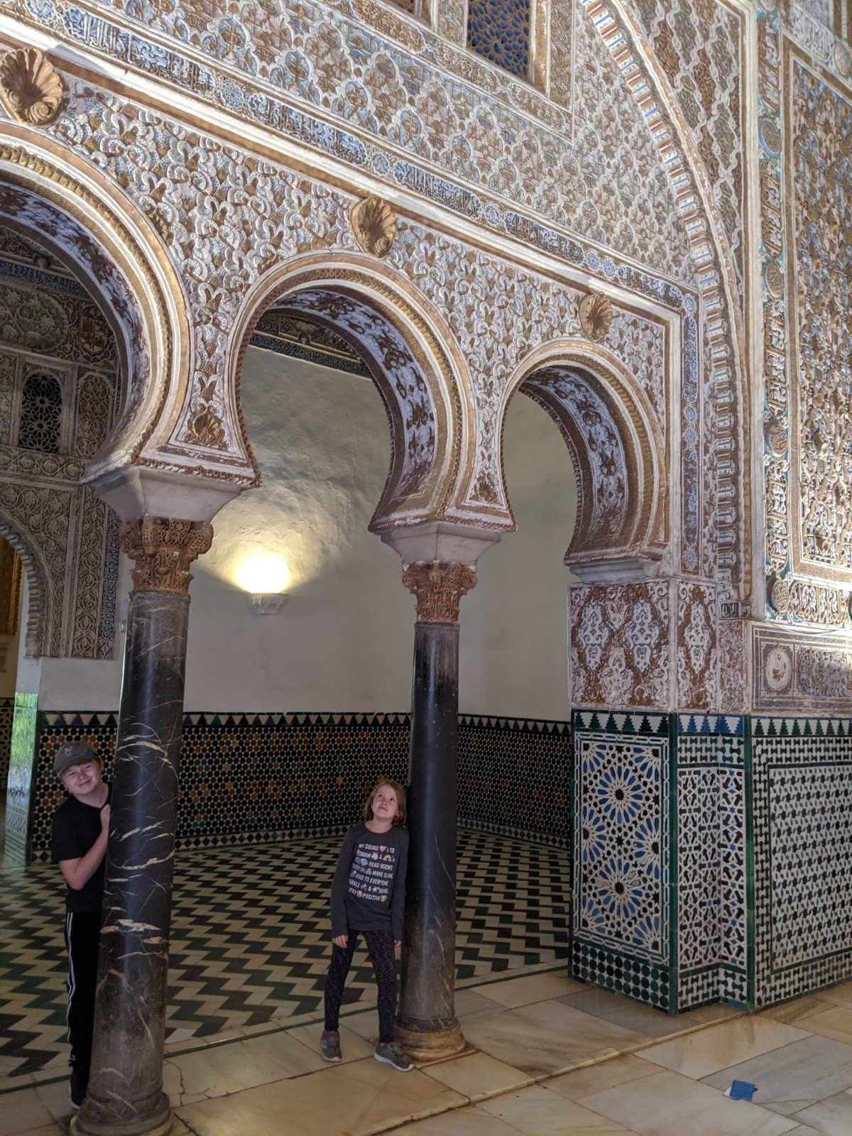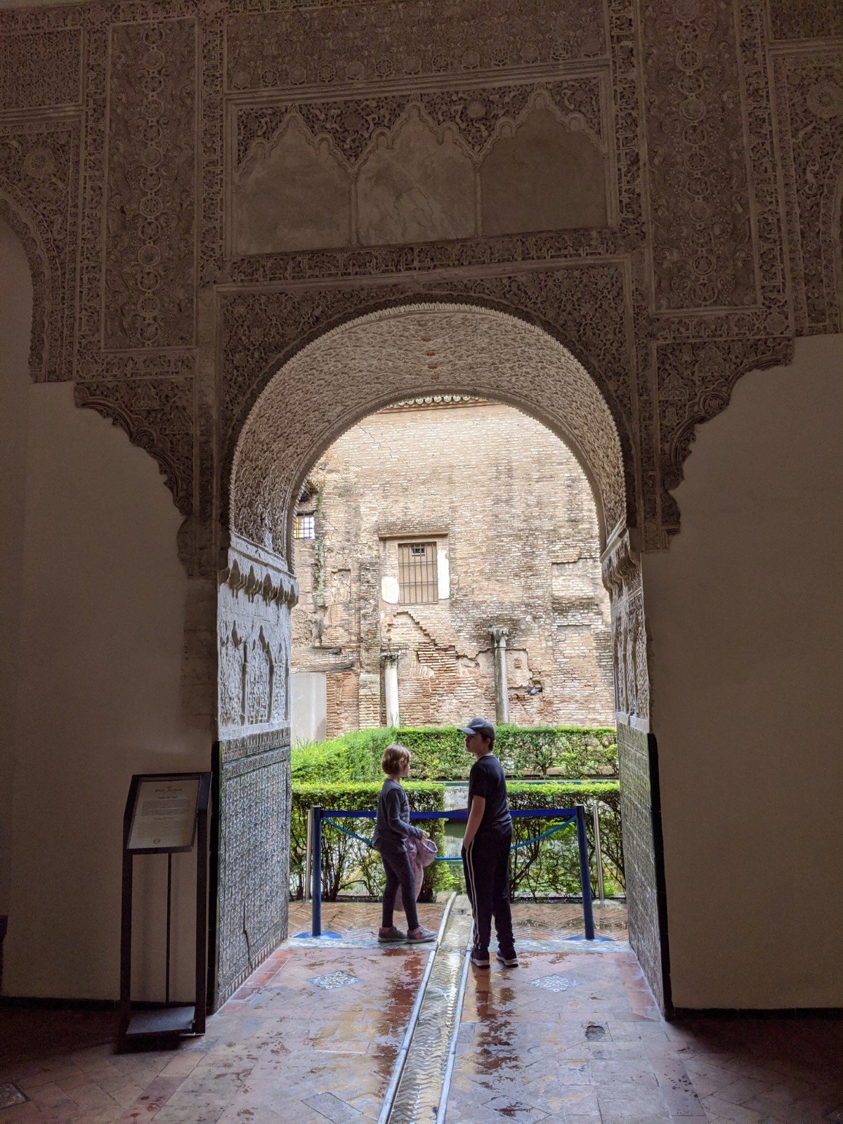 Then we finally got to Real Alcazar, a big palace with lots of buildings and gardens and parks. The palace is very old. It was originally built when Morocco had taken over Spain, so it doesn’t look like other palaces in Europe at all. There are lots of really fancy tiles everywhere. I really like the doorways and windows.