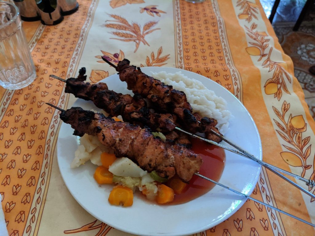 Then we had dinner there. First, they gave us some soup. Then they gave us another dish with chicken and veggies that we thought was a full meal, so we ate all that and got full on it. But then… they brought another tagine, and we couldn’t eat it because we were too full!