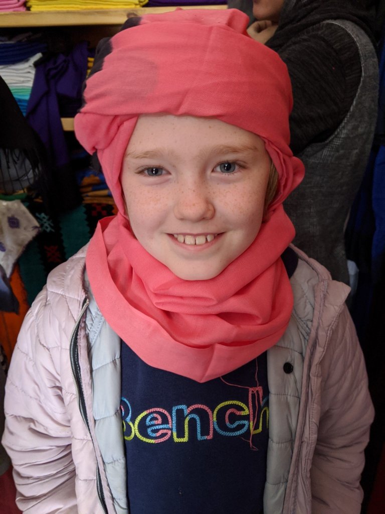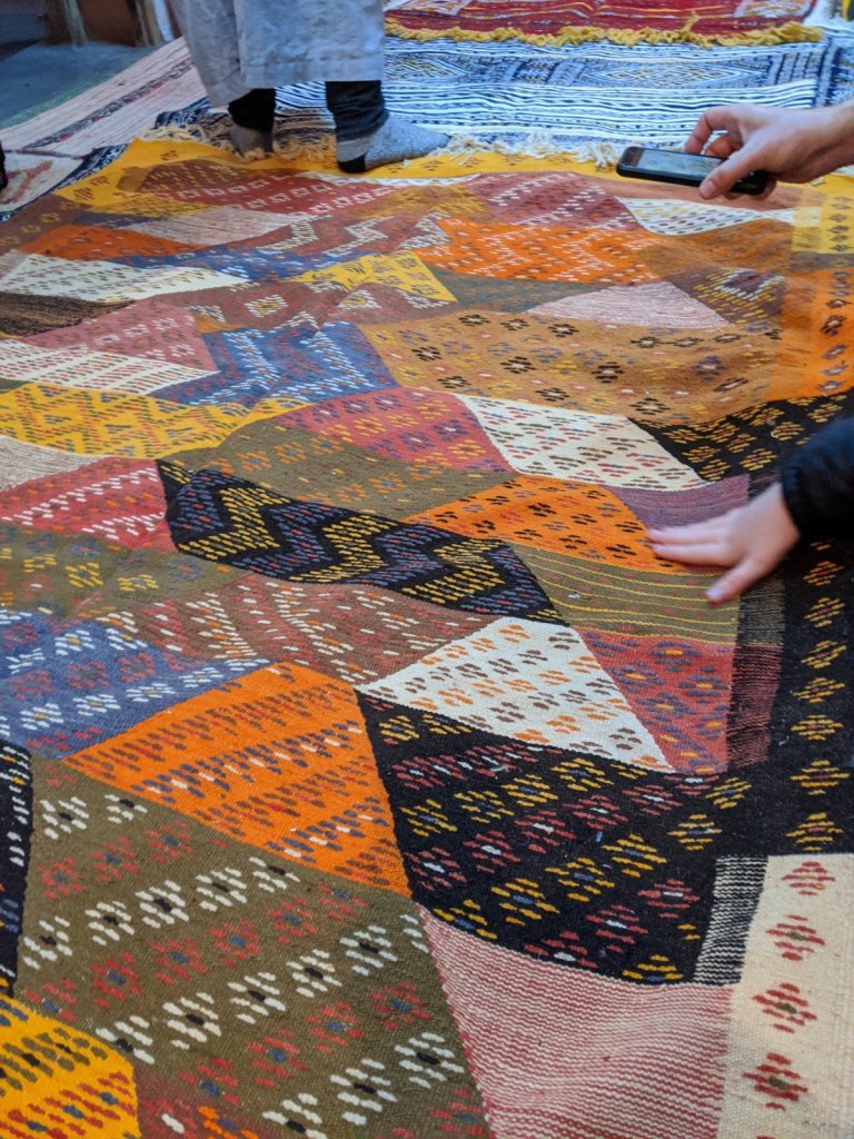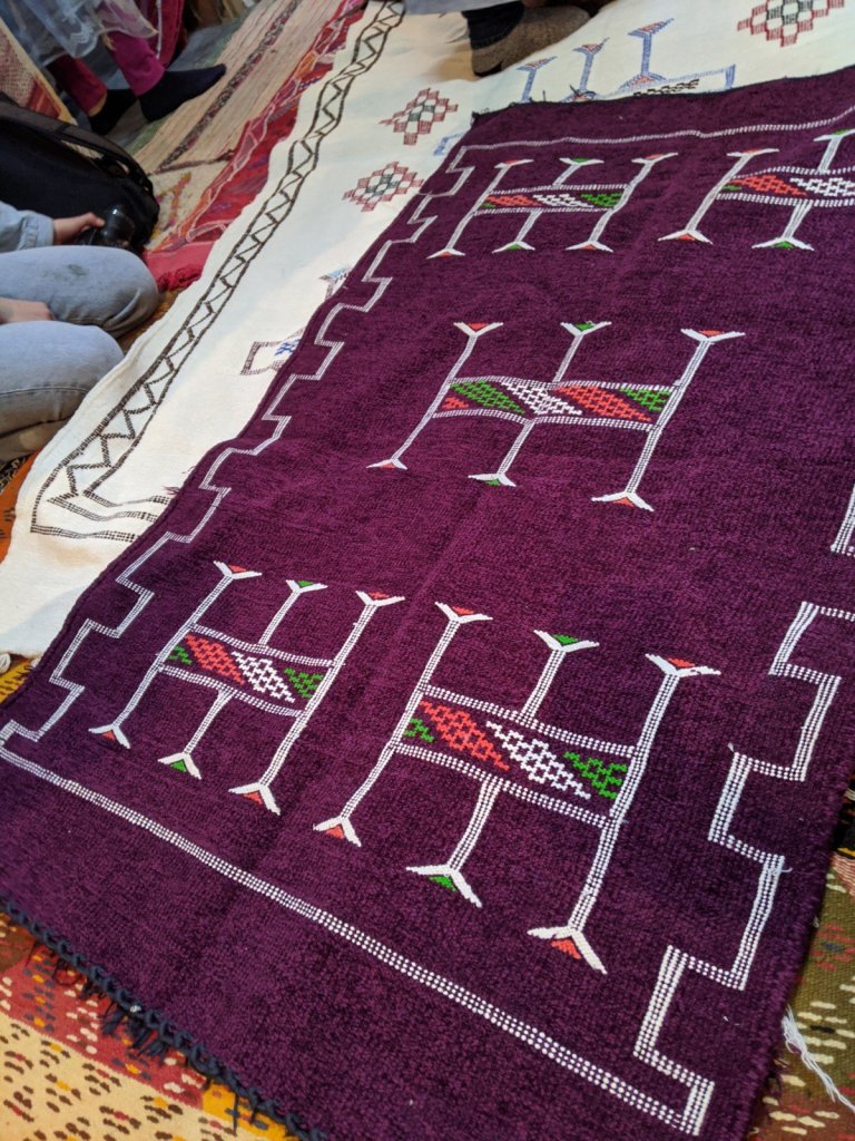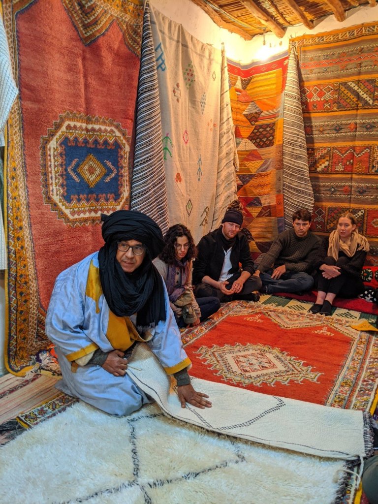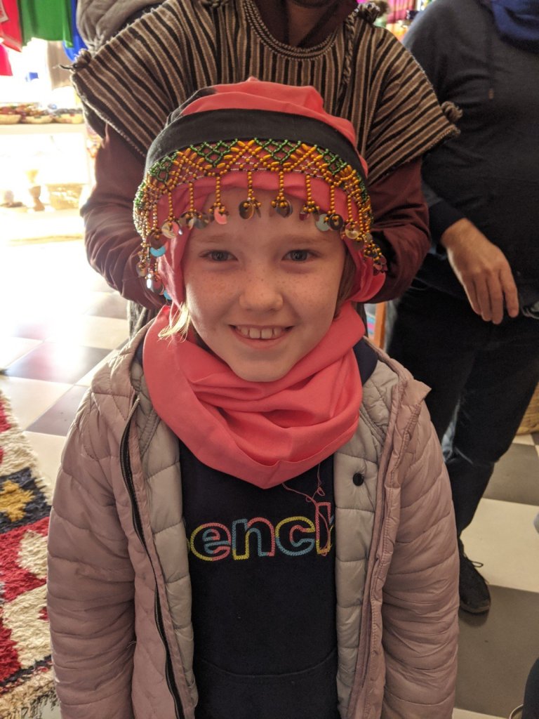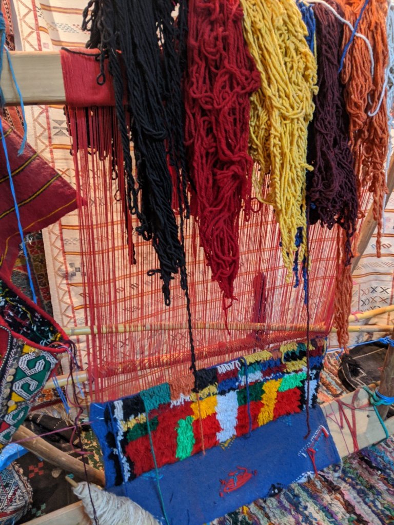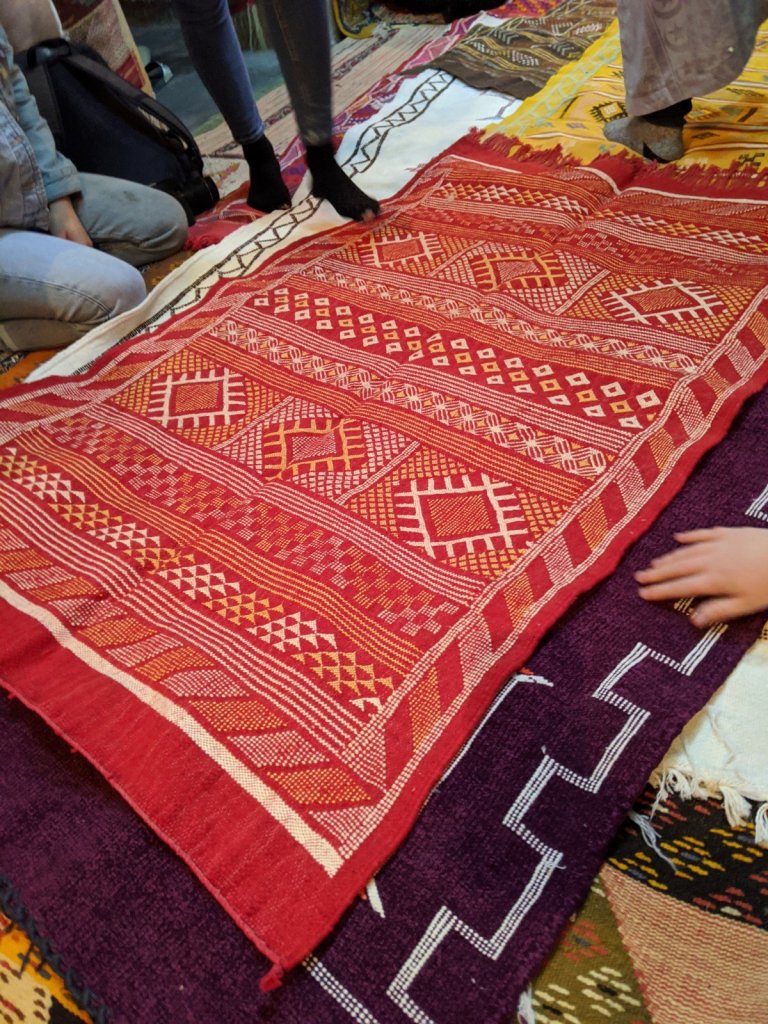 After we crossed the river, we went into a carpet shop to learn about the different types of dyes and carpets, see a big loom and have a bit of mint tea. We thought the carpets were beautiful, but we didn’t buy one.