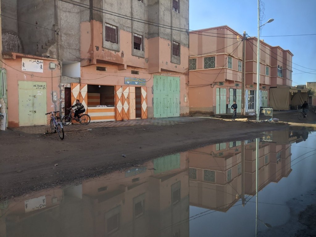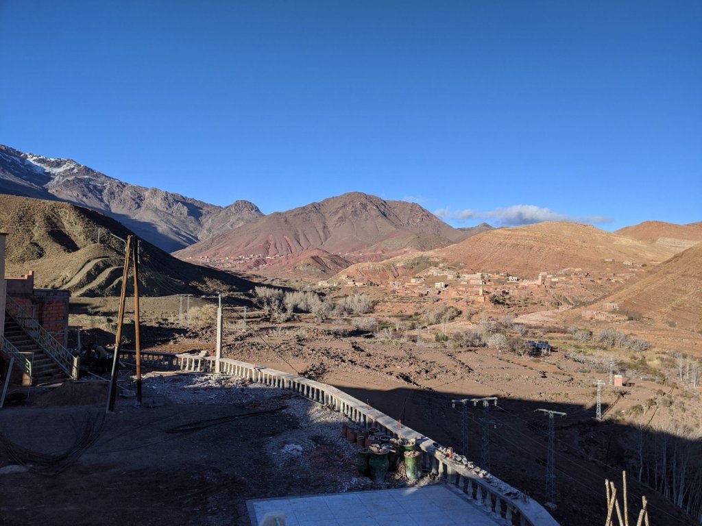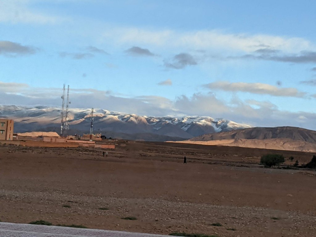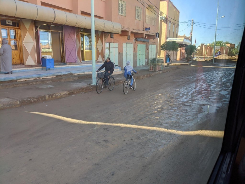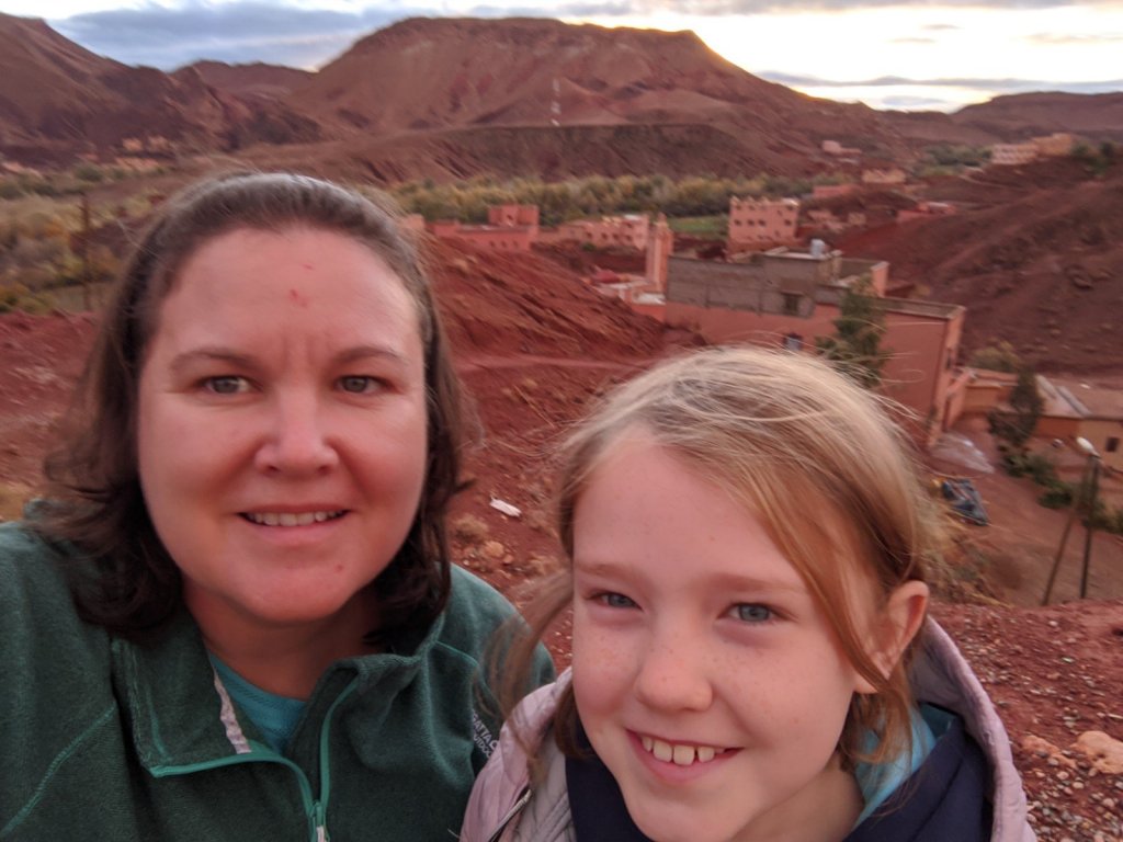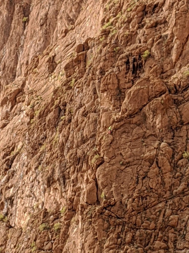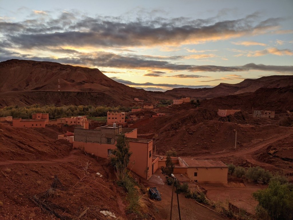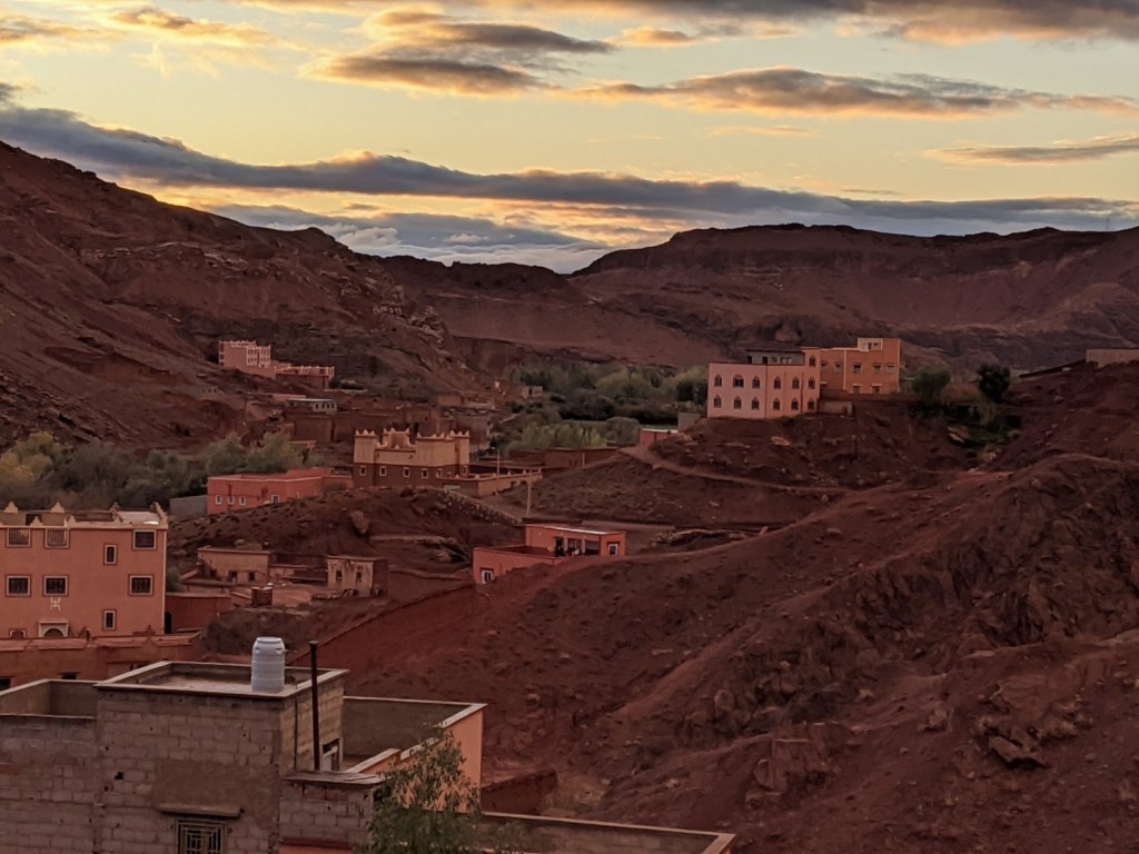 We got on the bus and as we were driving, we watched the sunrise. We hiked to see a place called Life Valley (in English) to learn about Berber nomads. To get to the next area, we had to cross a big river but it had no bridge. It didn’t have a bridge because it is usually a small river, but it rained yesterday, which it only does about once or twice a year. We had to build a bridge across it with some tree trunks placed nearby.