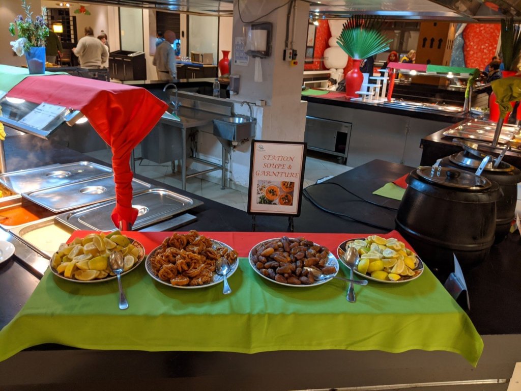 Every day there is a different theme for dinner and the food always has something to do with the theme. I liked the Italian night best.
