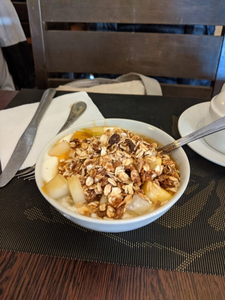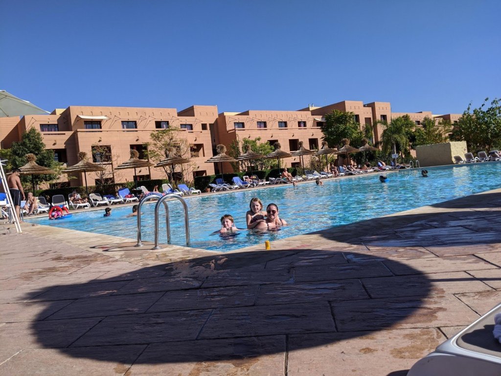 There was a heated pool that we went to every day after breakfast. Our room is close to the pool. We went swimming – it was pretty warm, warmer than we thought it would be! Each day we swam for a while.