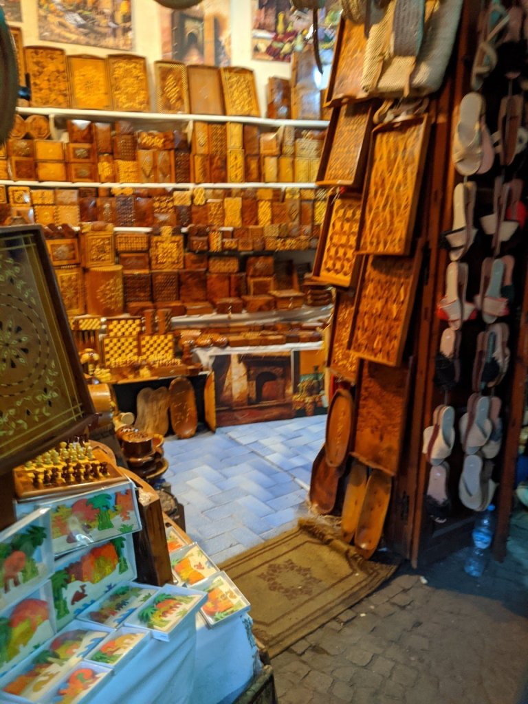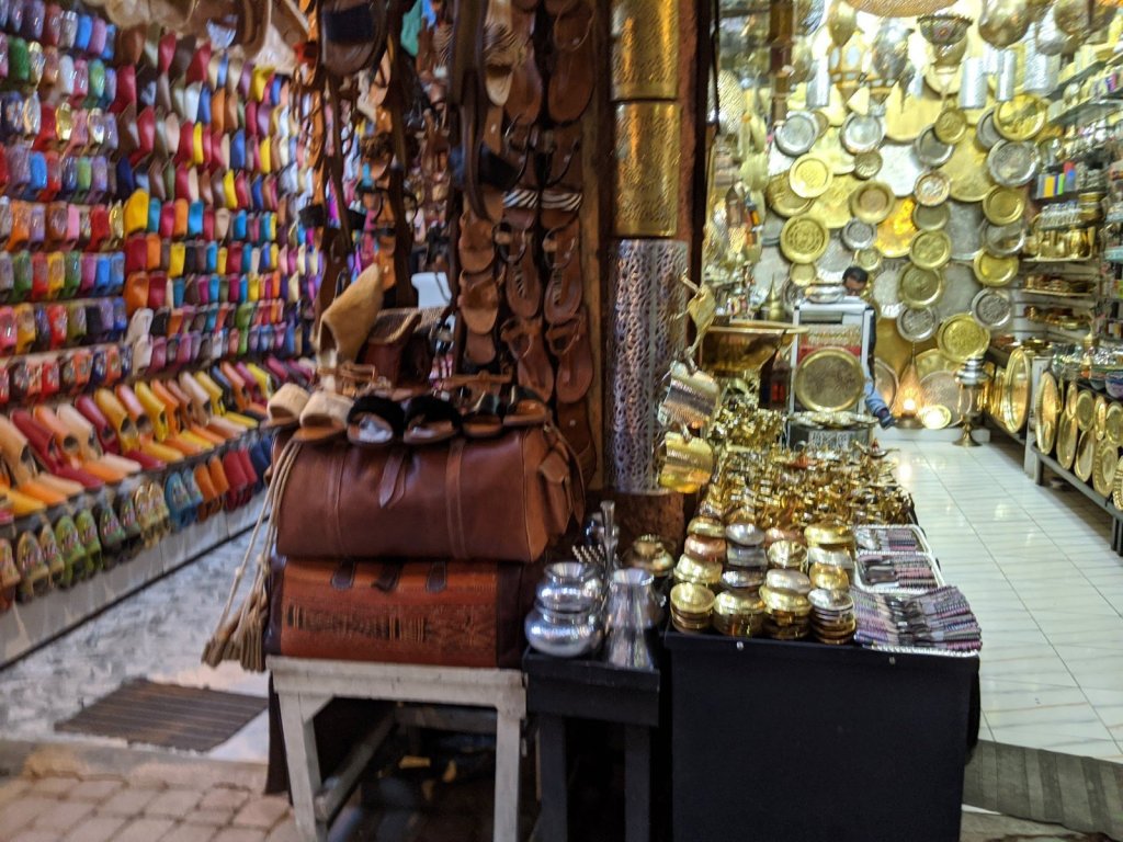 We purchased some beautiful scarves, earrings, argon oil, camel wool hats, a leather wallet, a wooden snake, and several mini camel and genie lamp figurines to make into Christmas ornaments. We stayed on budget, too! Together, Brad and I made a good team for haggling. I was proud of how we would discuss our final price before going in and would hold our ground. I was good at walking away, and Brad would linger behind a bit to close the deal. Although we did have some fun with the negotiations and see how locals almost treat selling like a game, we both prefer the more western shopping experience where items have a fair set price, the same for everyone, tourists and locals alike.