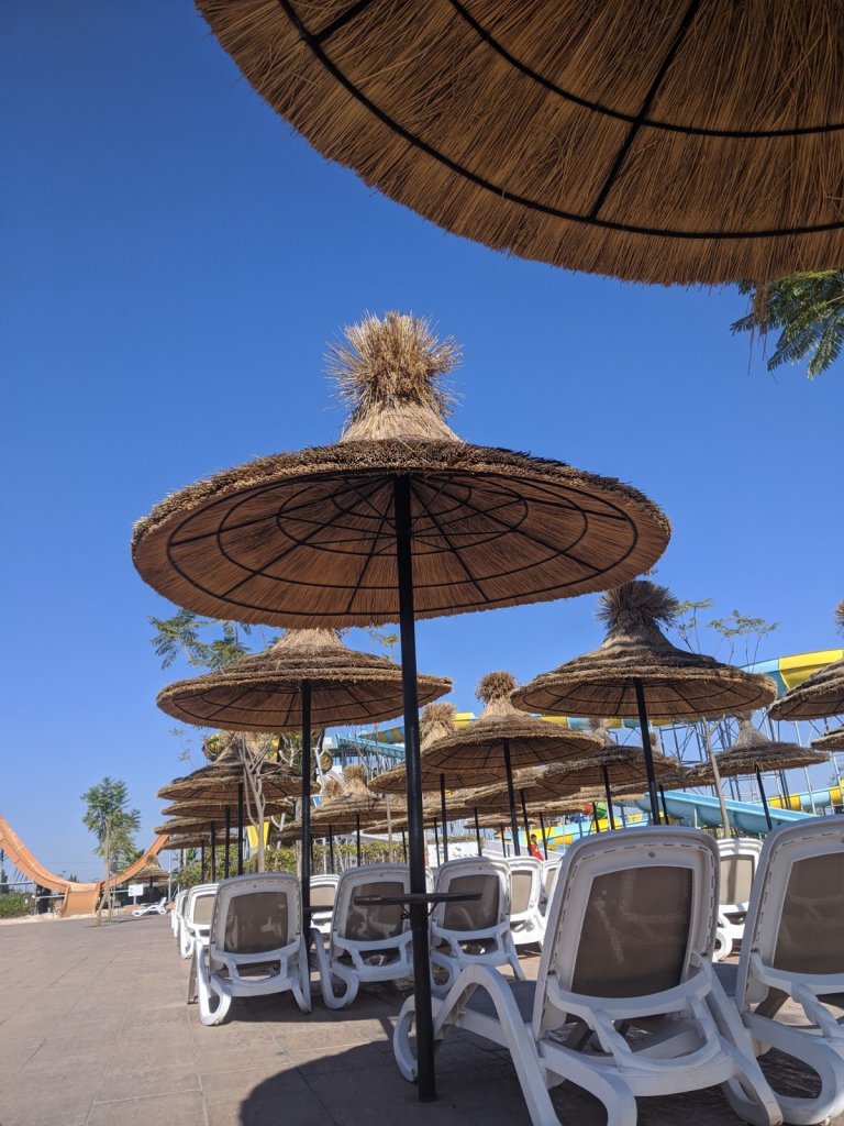 The waterslides were really fun. We convinced Mom to go on them with us the second day. She went on two of them, but the water was pretty cold, so she didn’t want to go on any more of them. She liked laying on the sun loungers and watching us instead. We had lots of races in the rainbow slide. I beat Charlotte every time. Dad would give us a five seconds headstart, but he still always won.