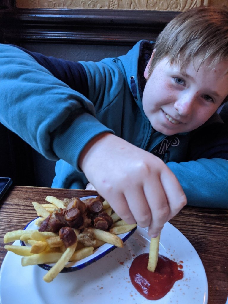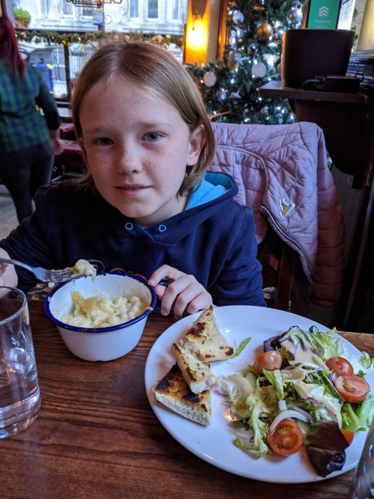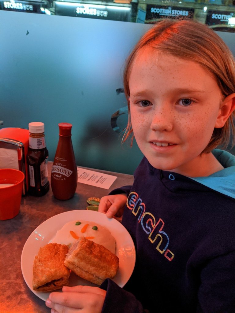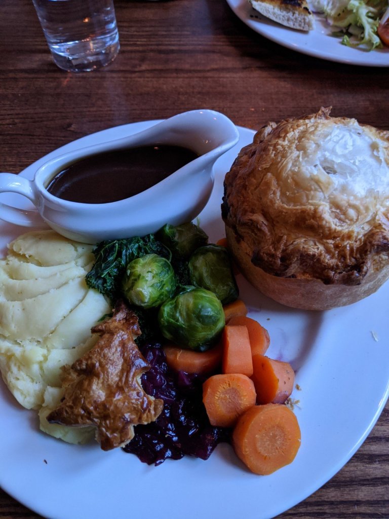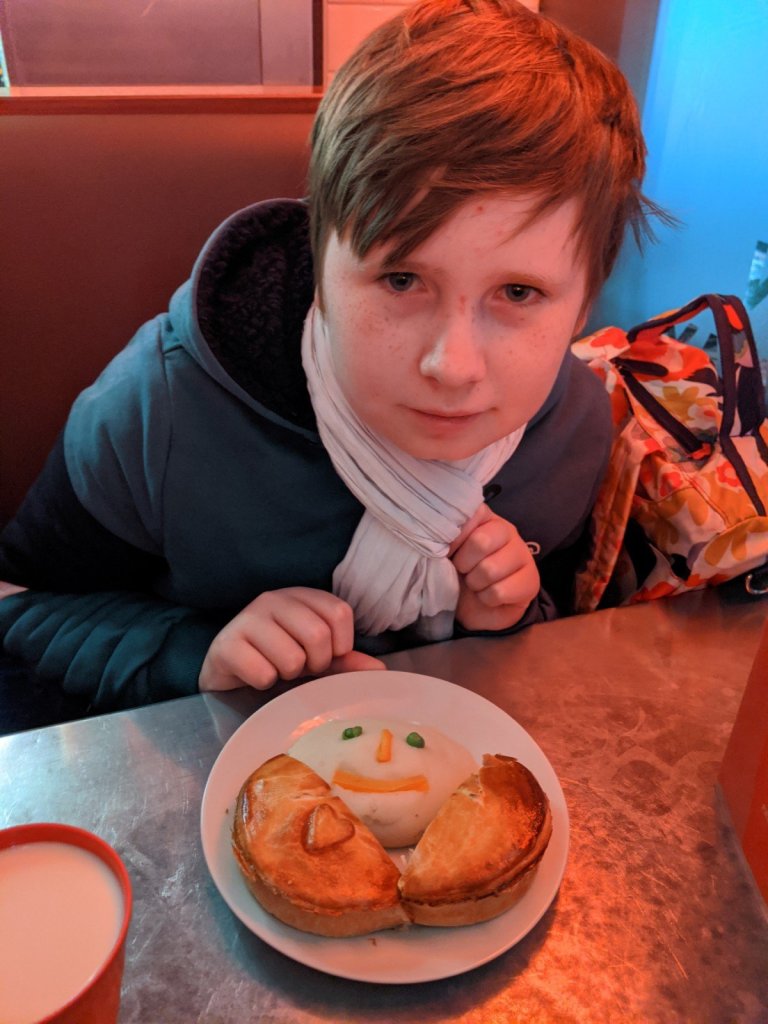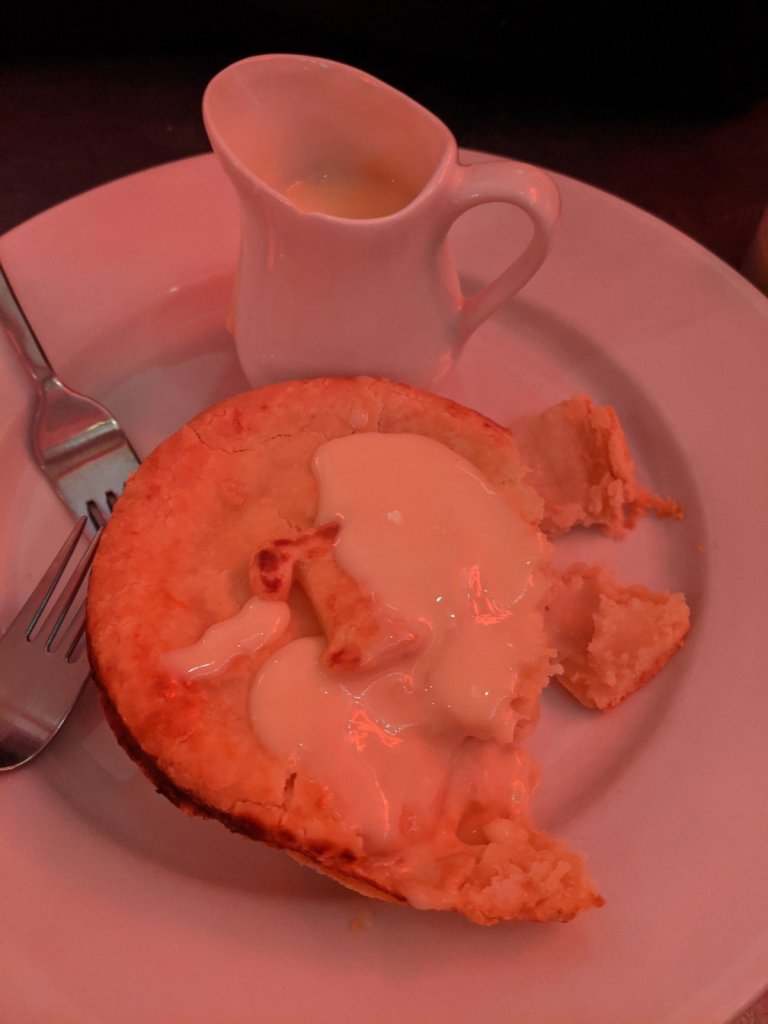After this we went to go have dinner at a restaurant called Piebury. It was cute because they gave us mashed potatoes with a little smile on top. But also I didn’t really feel that good after, so we took the train back to the bed and breakfast for the night.