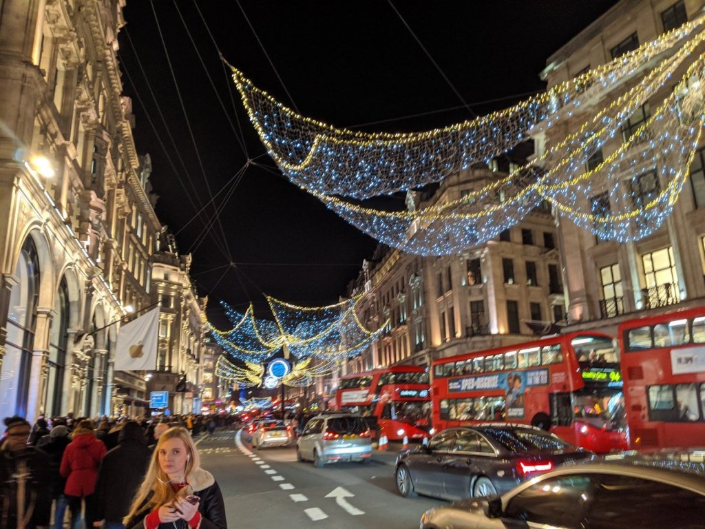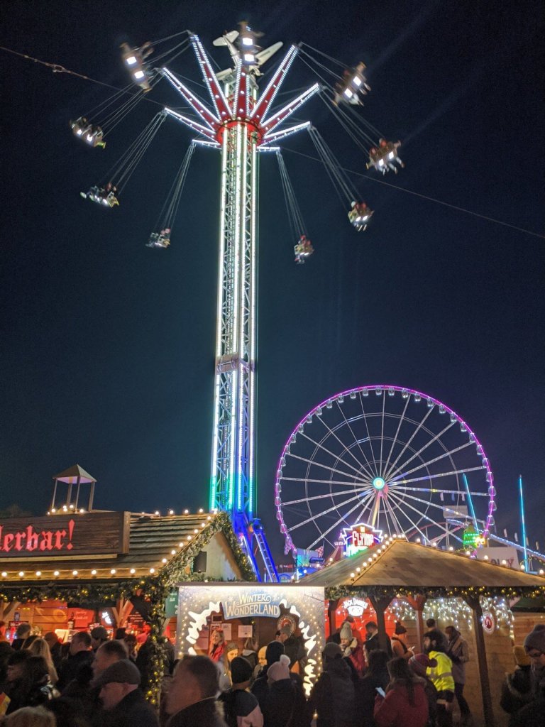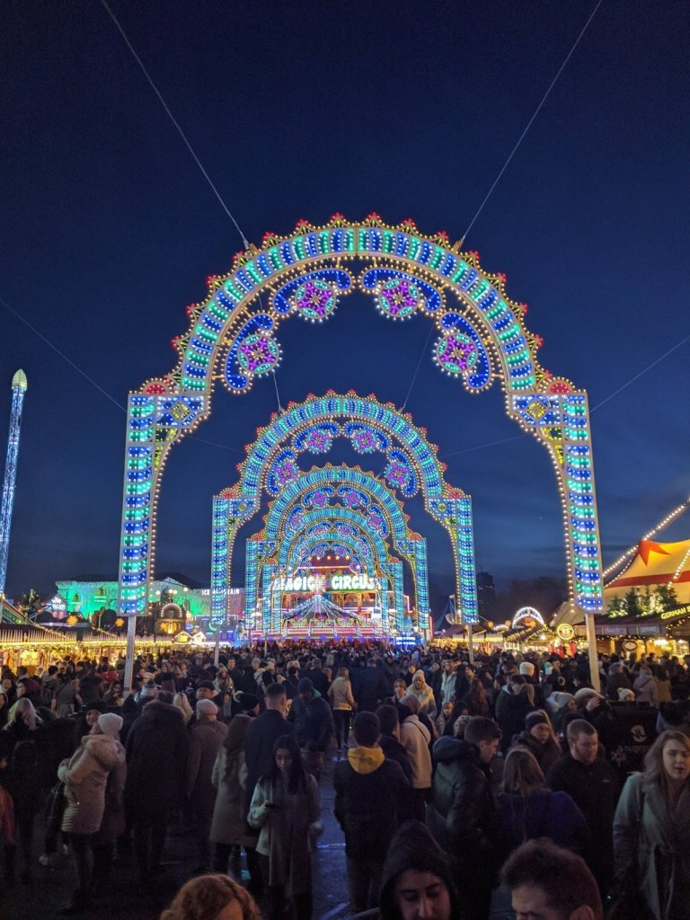 After we ate, we walked to nearby Hyde Park was to check out “Winter Wonderland” festival for Christmas. It was absolutely crazy there. There were tons of different rides and things to buy. We bought some toques because we were so cold in London after our time in Marrakech. We bought some really good hot chocolate from one of the stands. We considered going on a few rides our seeing one of the many shows (ice skating, circus, etc.), but the prices were so high that we didn’t think it was worth it. The crowds were ginormous! We stayed for about an hour, looking around and then decided to go to Hamleys, a huge toy store we heard about from Honey’s family.