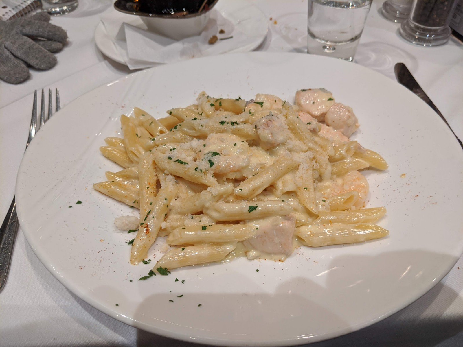 Once we had settled into our room, we walked to a nearby restaurant that our host said was really good. It was an Italian food place that was quite fancy called Zeno Italian Restaurant. The chef nicely made plain spaghetti for me and Sam because we didn’t want any of the squid or fancy stuff like that. Mom said her lasagne was delicious. Dad had salmon penne and he loved it.