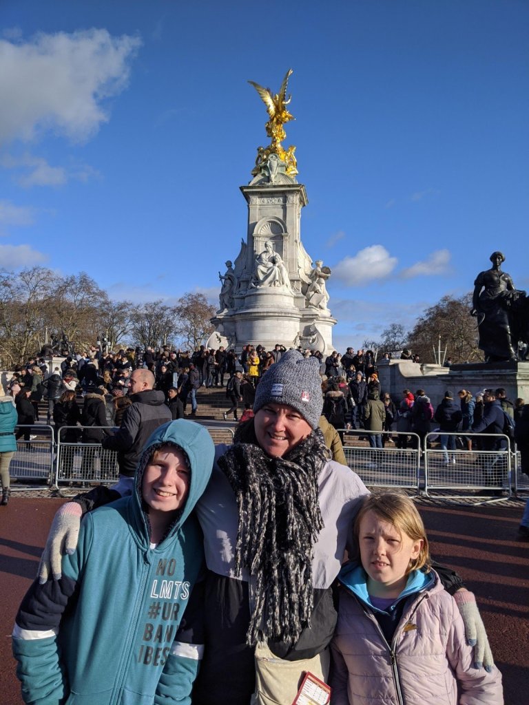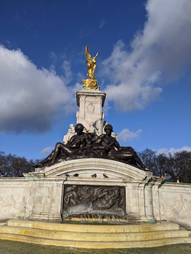 Then we went to Buckingham Palace. It was so big and had a big fountain that was made out of gold. There were guards there that stood very still.