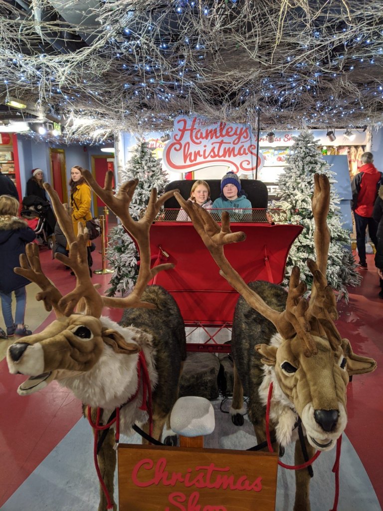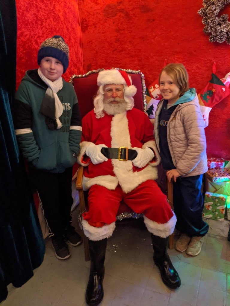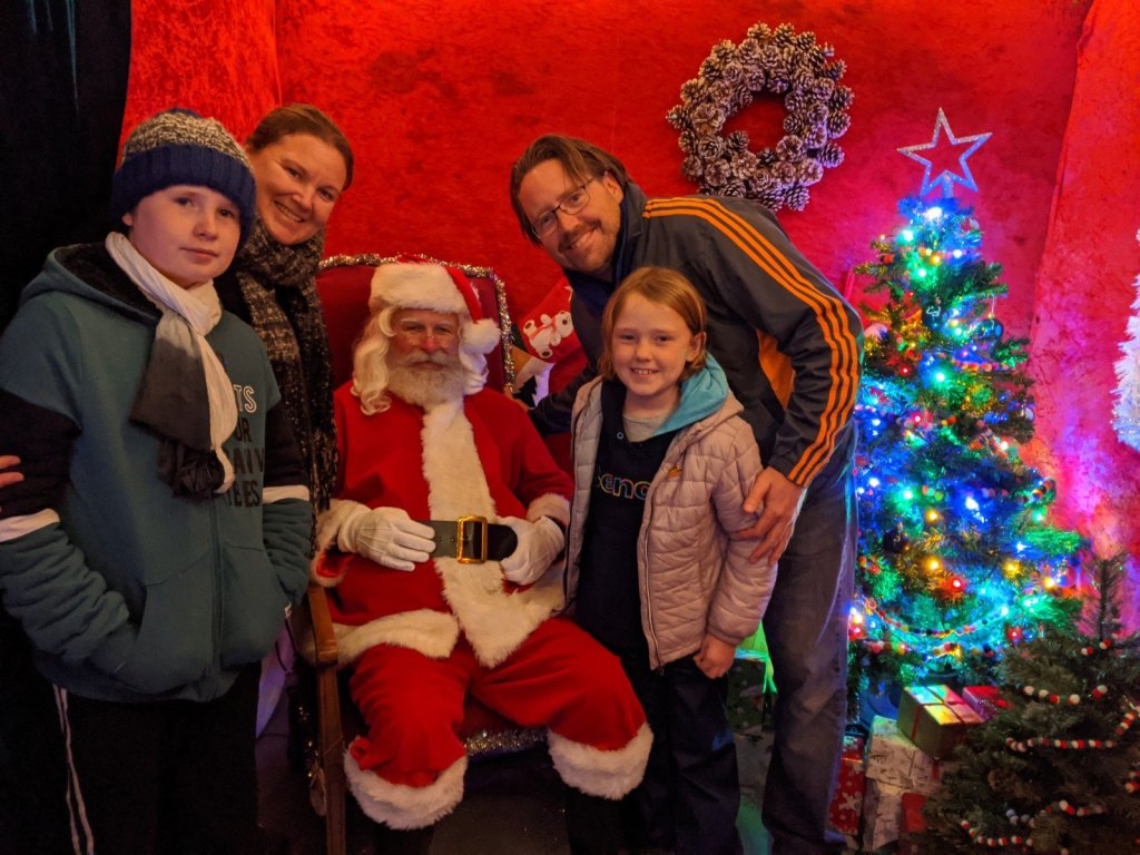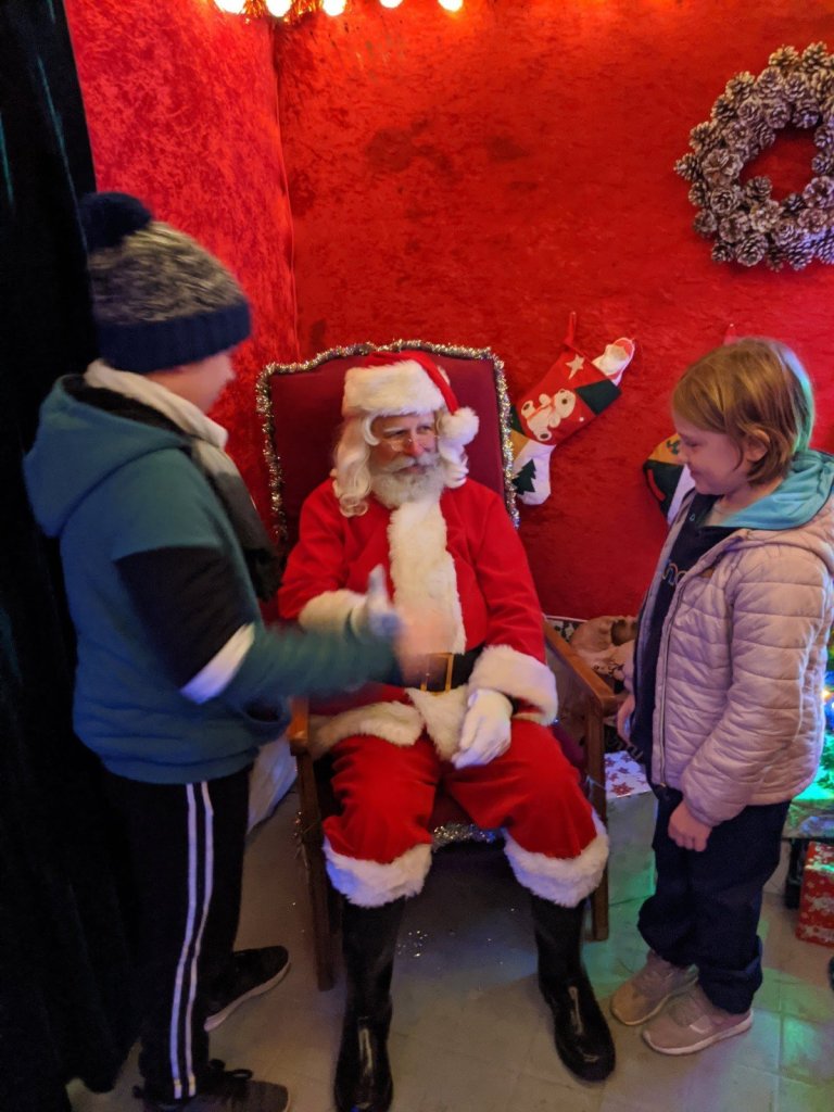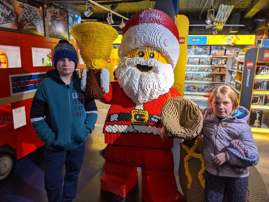 In the market there was Santa’s grotto and I really wanted to go in, so my Mom said yes. My brother and I had so much fun telling Santa about our trip. We talked to Santa for a long time, way longer than most people (we were holding up the line). At the end he gave us a present, a mini Lego set. Sam got a Santa one and I got a snowman.