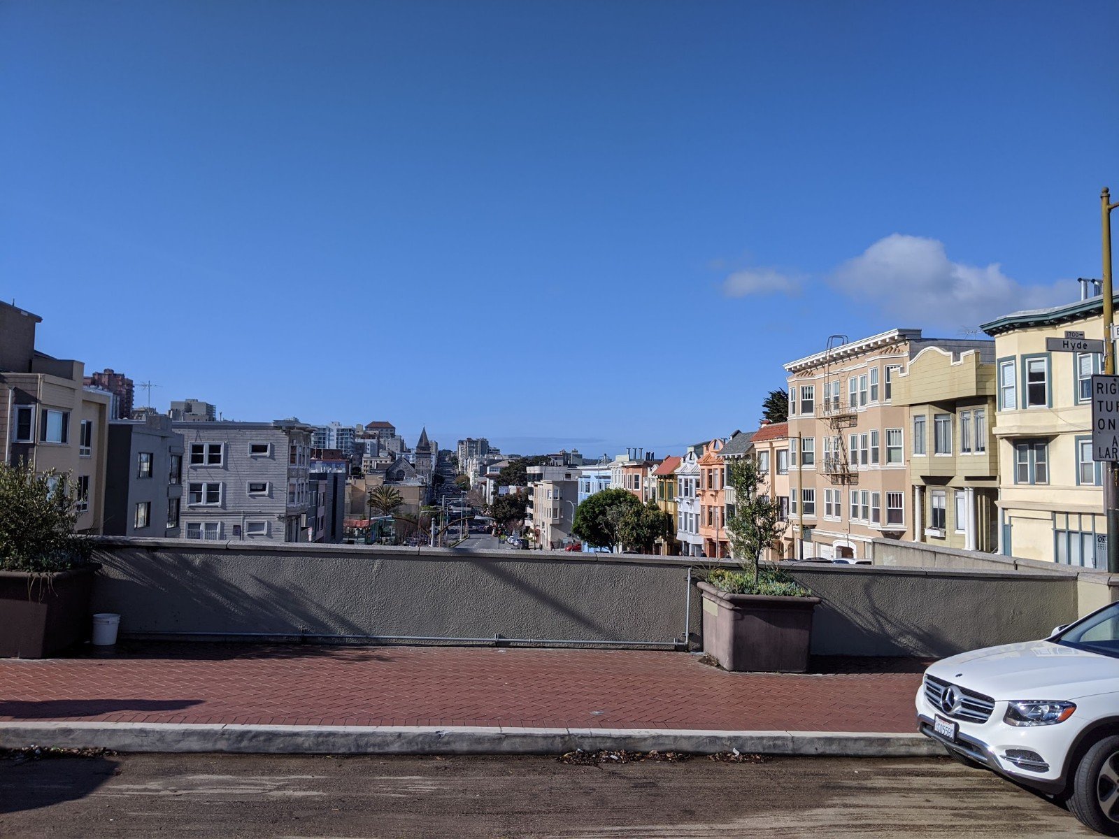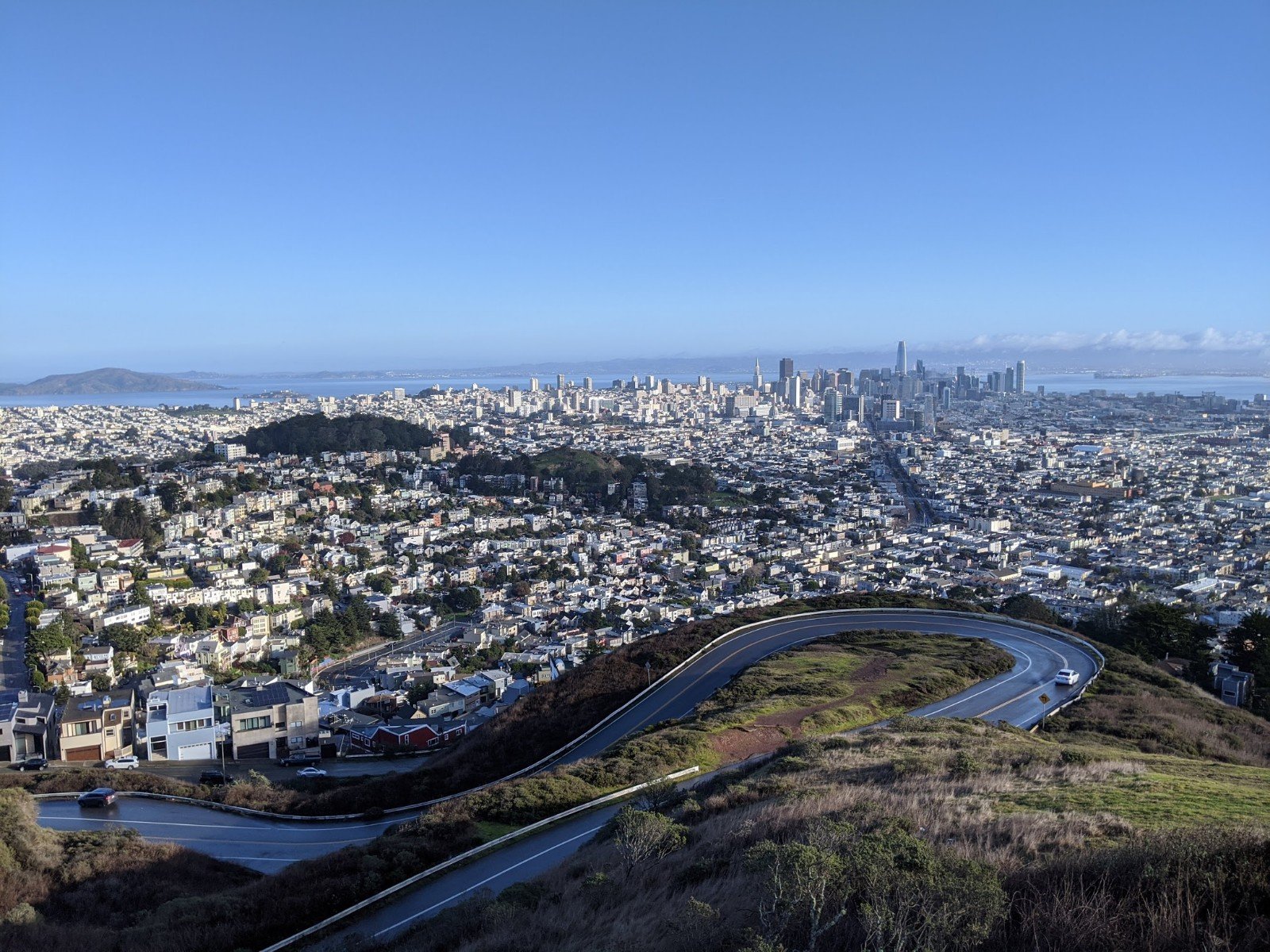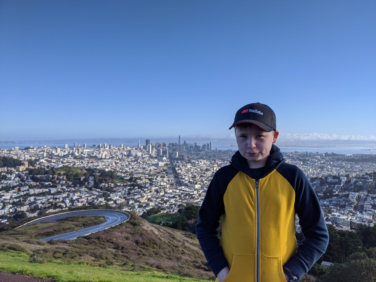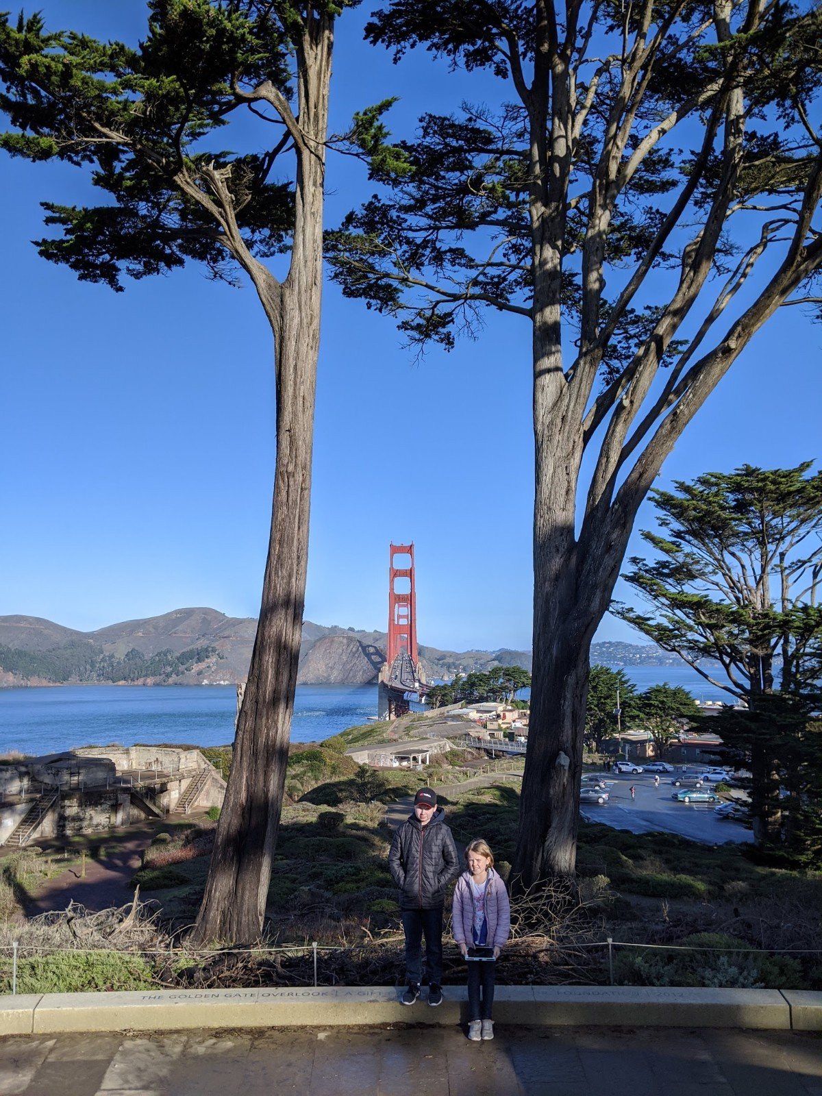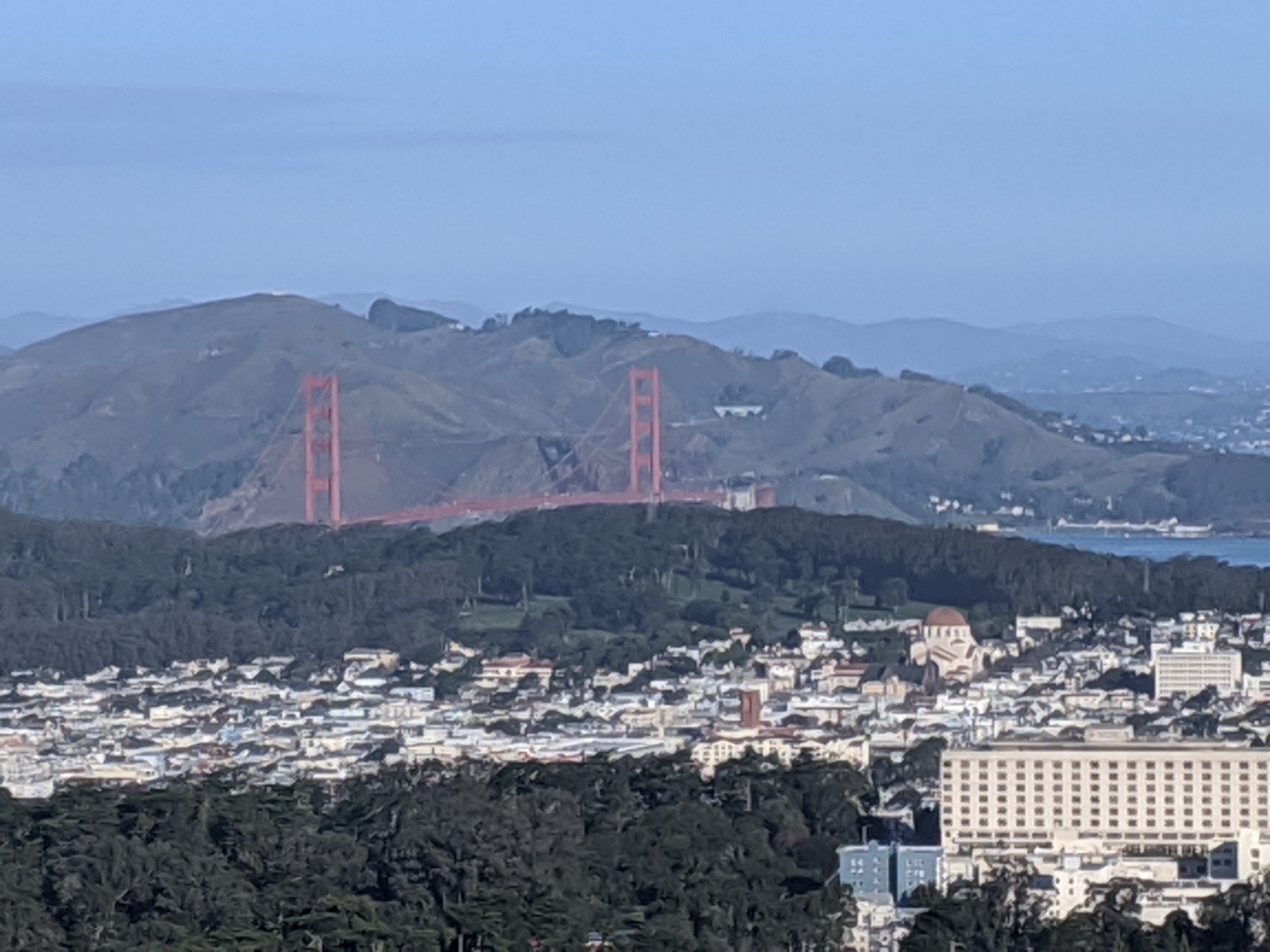 This morning we wanted to see some more of the city, so we drove high into the hills to a lookout called Twin Peaks. We could see the whole city from there. It was very windy and cold.