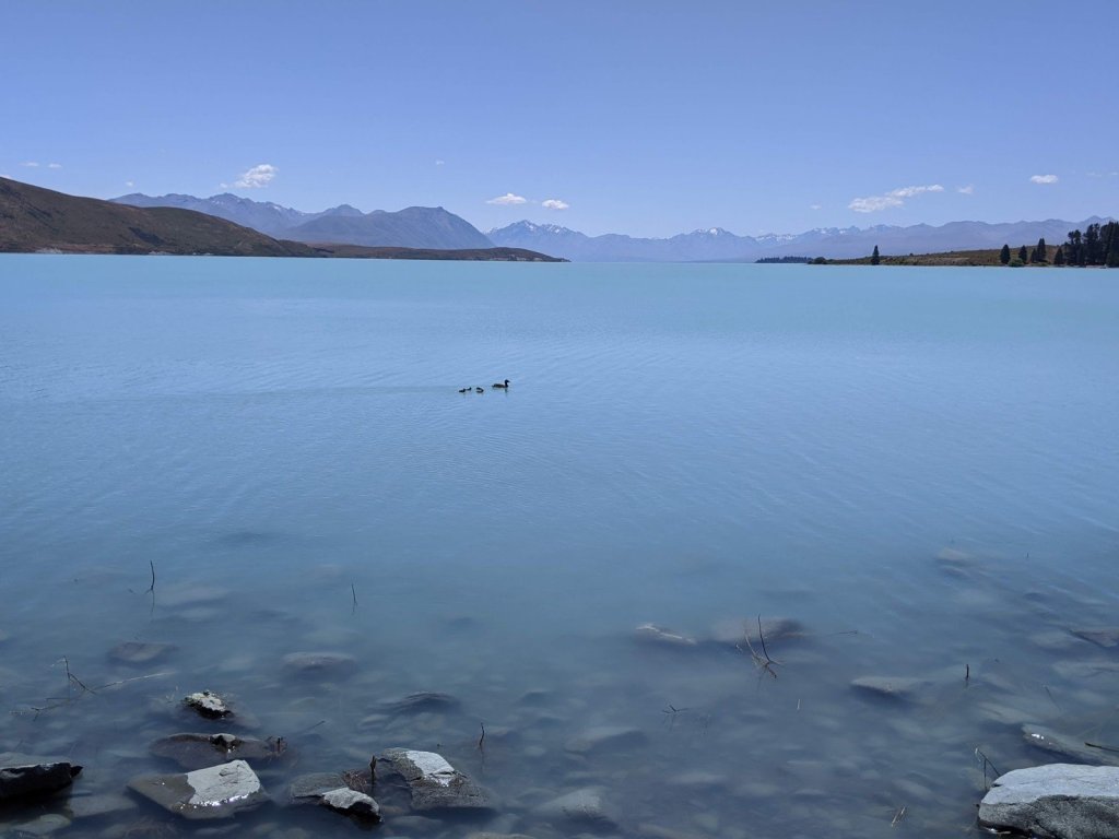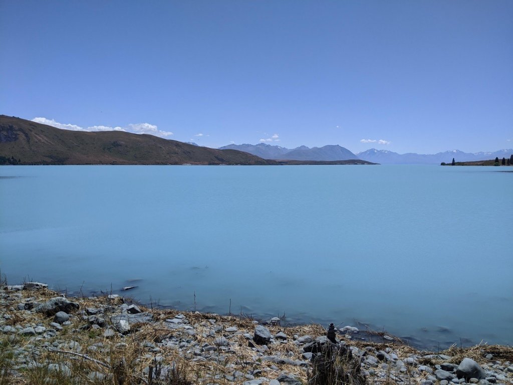 We did some browsing in gift shops (the little town reminded us of a tiny Banff) and then went to Lake Pukaki, another glacier lake that we were staying at.