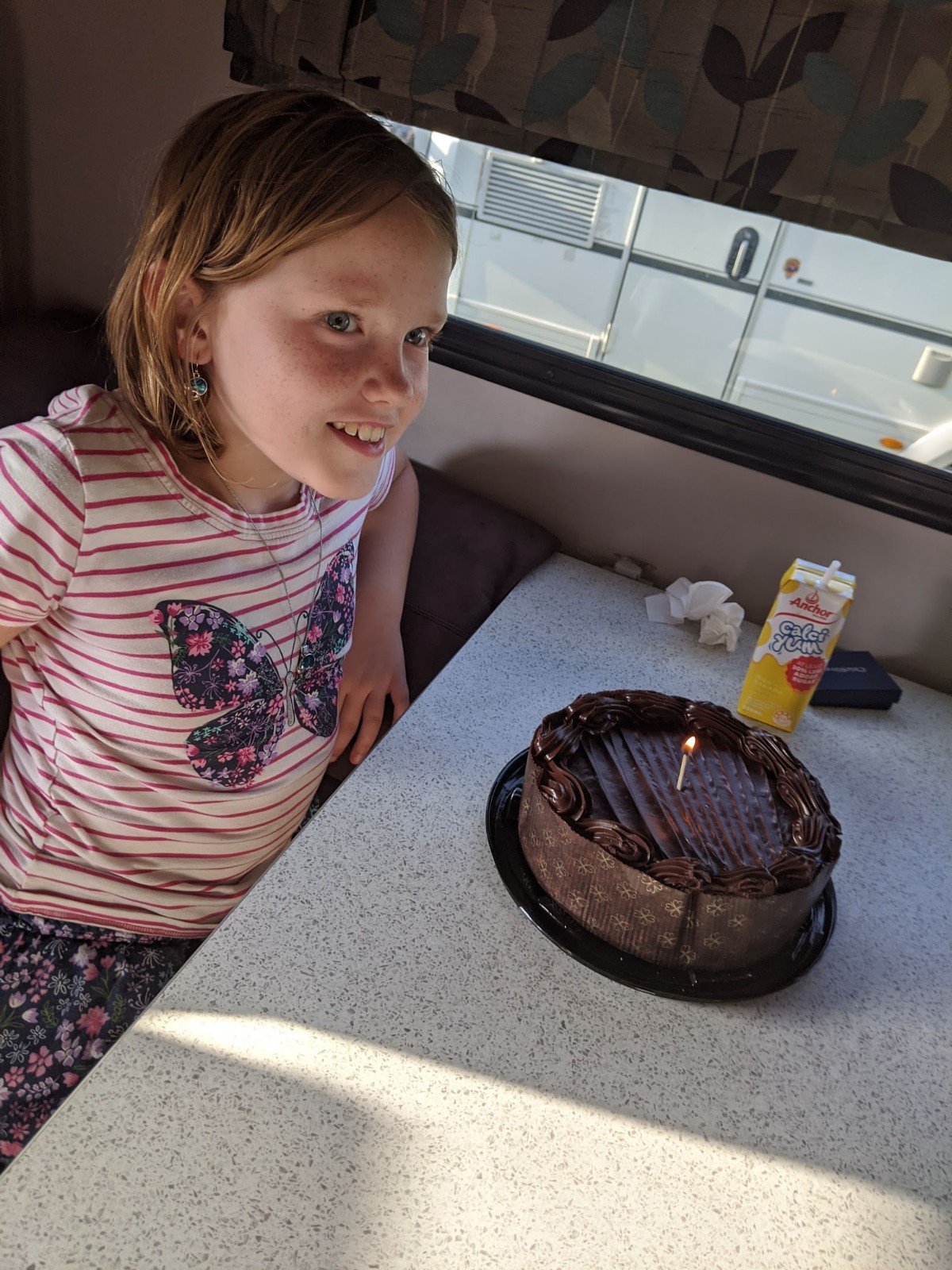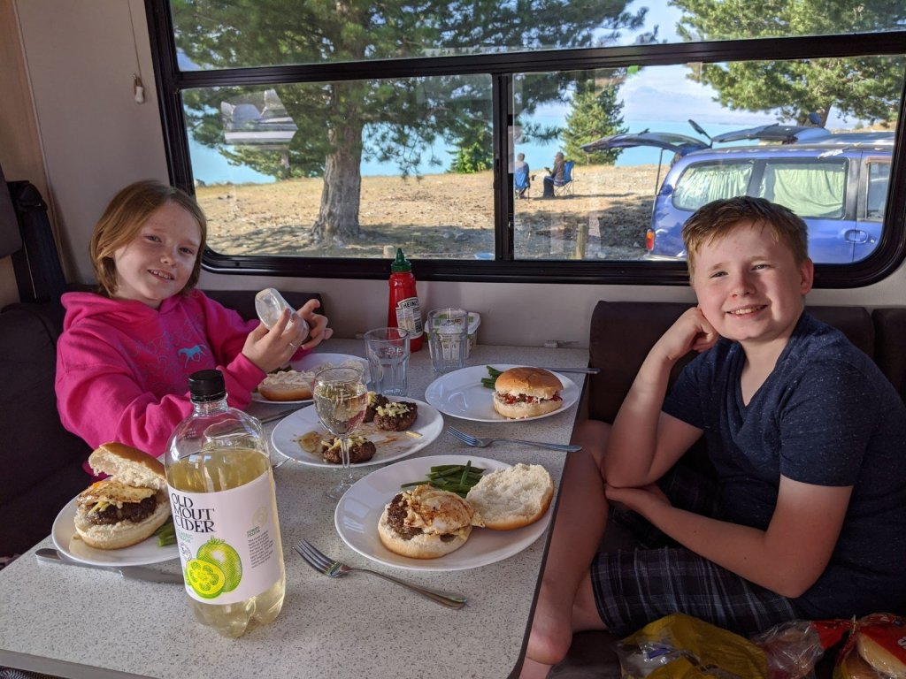 I was excited to wake up this morning because it is my birthday! This morning I video-chatted my cousins after my Mom surprised me with “vancakes” (pancakes made in our campervan). Also my parents surprised me with a gift of kiwi earrings and necklace, and my grandma had sent a special silver world necklace, too. Then we went on the road!