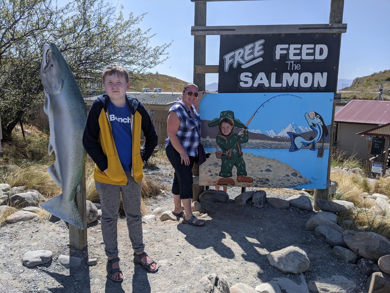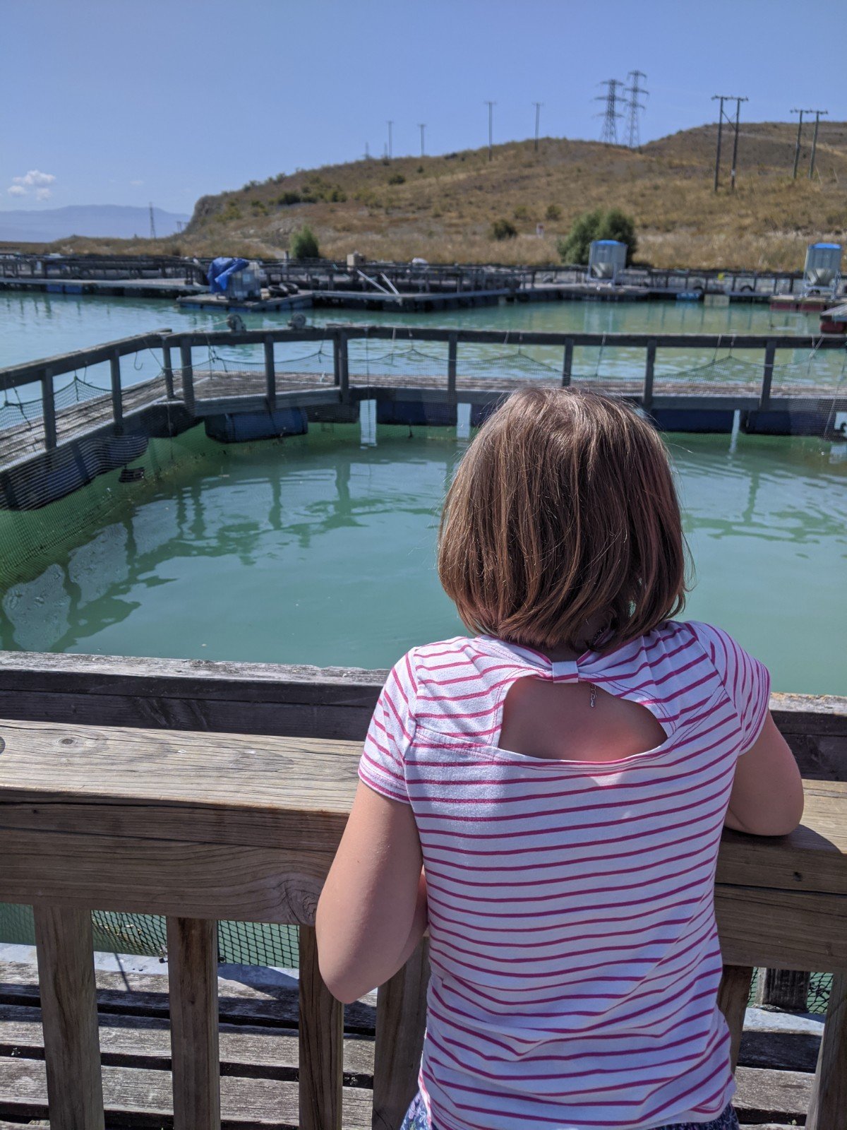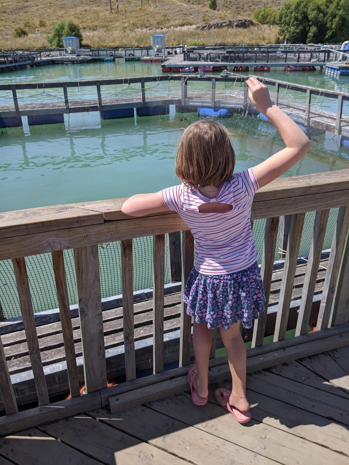 On the way to our next campsite, we went to a salmon farm where we fed the salmon. They were really big and jumped up to the top of the water to catch the food. Dad got salmon sushi.
