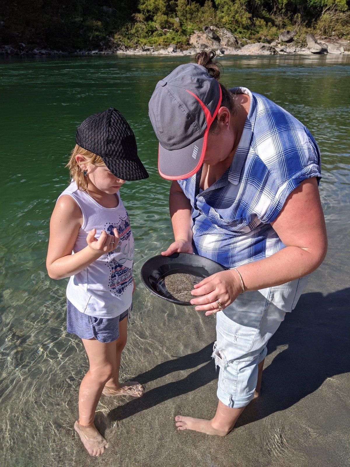 We went panning for gold. We found a good amount of gold but not enough to make us rich, so we will just keep it as a souvenir. There were so many sandflies that we did not stay very long.