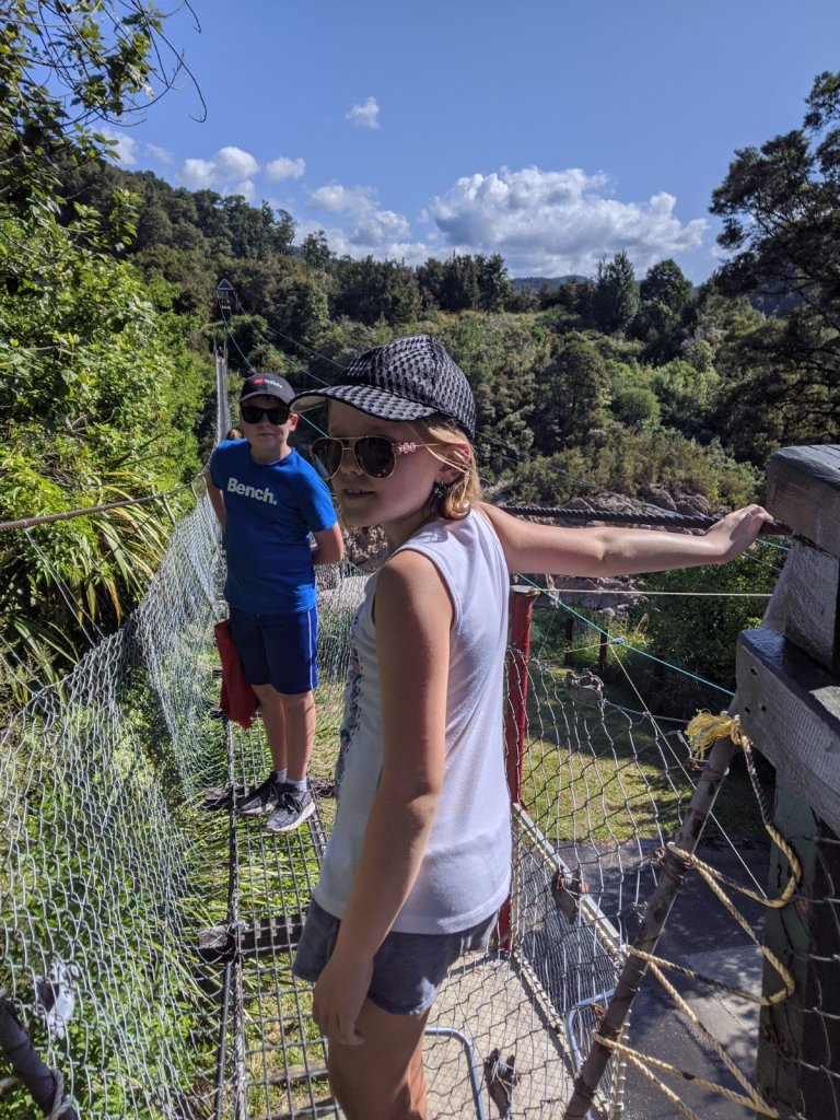 We got back in our camper to go to our next stop, Buller Gorge Adventure Park. In the park, the only way to get to any of the attractions is to cross a giant swingbridge to an island and then hiked for a few minutes to get to our first activity.