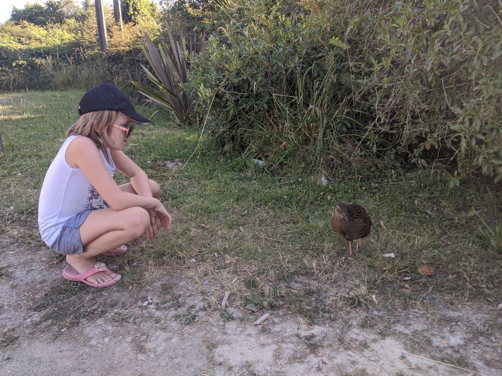 I made friends with a bird called a Weka that followed me across the parking lot. I named him George. Wekas they look like kiwis but the have a shorter beak. They seem like a combination of chicken, duck, and kiwi bird. They do not fly. They have wings, but they are tiny and located right behind their heads, kind of like a peacock but less elegant. I was so happy and speechless when it came right up to me!