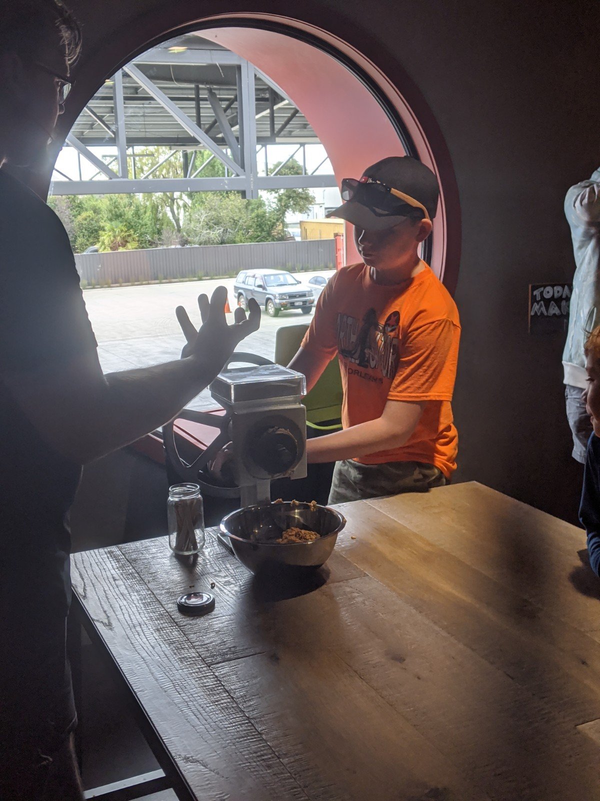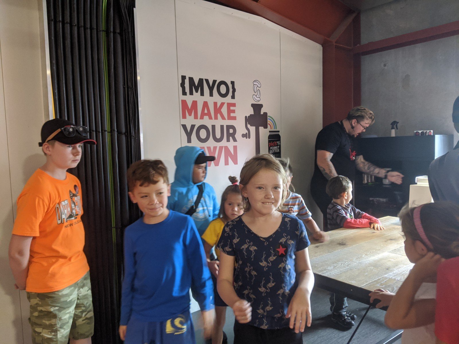 When we got to Nelson, we went in the Pic’s peanut butter factory, and we got to talk with Pic. He was fun to talk with. He asked me to show him my Canadian accent. We got to go on the tour for free. We learned a lot about making peanut butter. Sam and I even got to make peanut butter. It was very easy because there was a machine that we put peanuts in and then we twisted the handle. Out came delicious peanut butter!