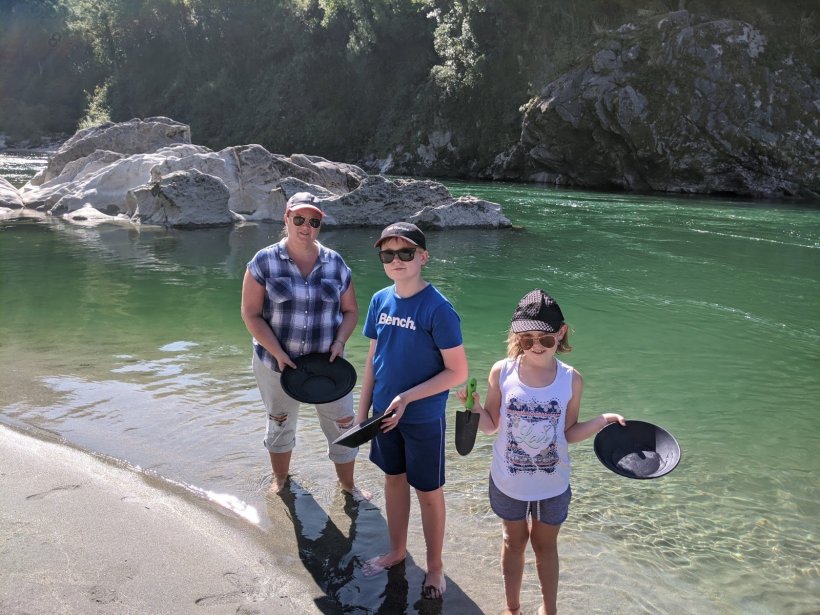 We went panning for gold. We found a good amount of gold but not enough to make us rich, so we will just keep it as a souvenir. There were so many sandflies that we did not stay very long.