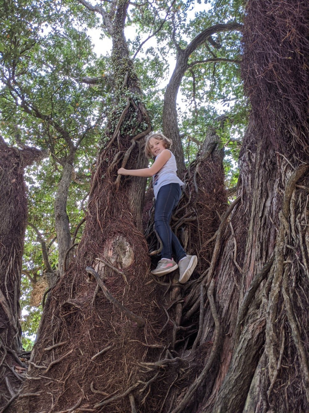 We didn’t want to stay in Wellington, so Dad drove to Porirua. We found a campsite by the water where Dad and I met a huge dog and its owner. When it sat down, it was as tall as me (not kidding). I climbed a tree and that was fun because it had lots of hand holds. Then we slept after having dinner.