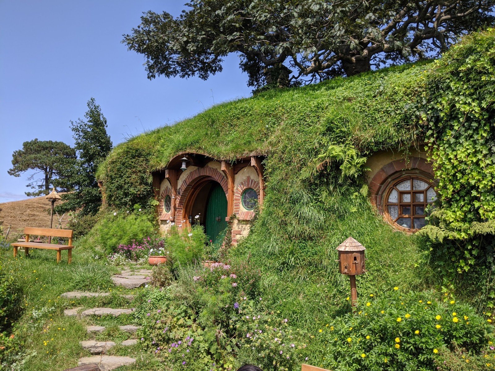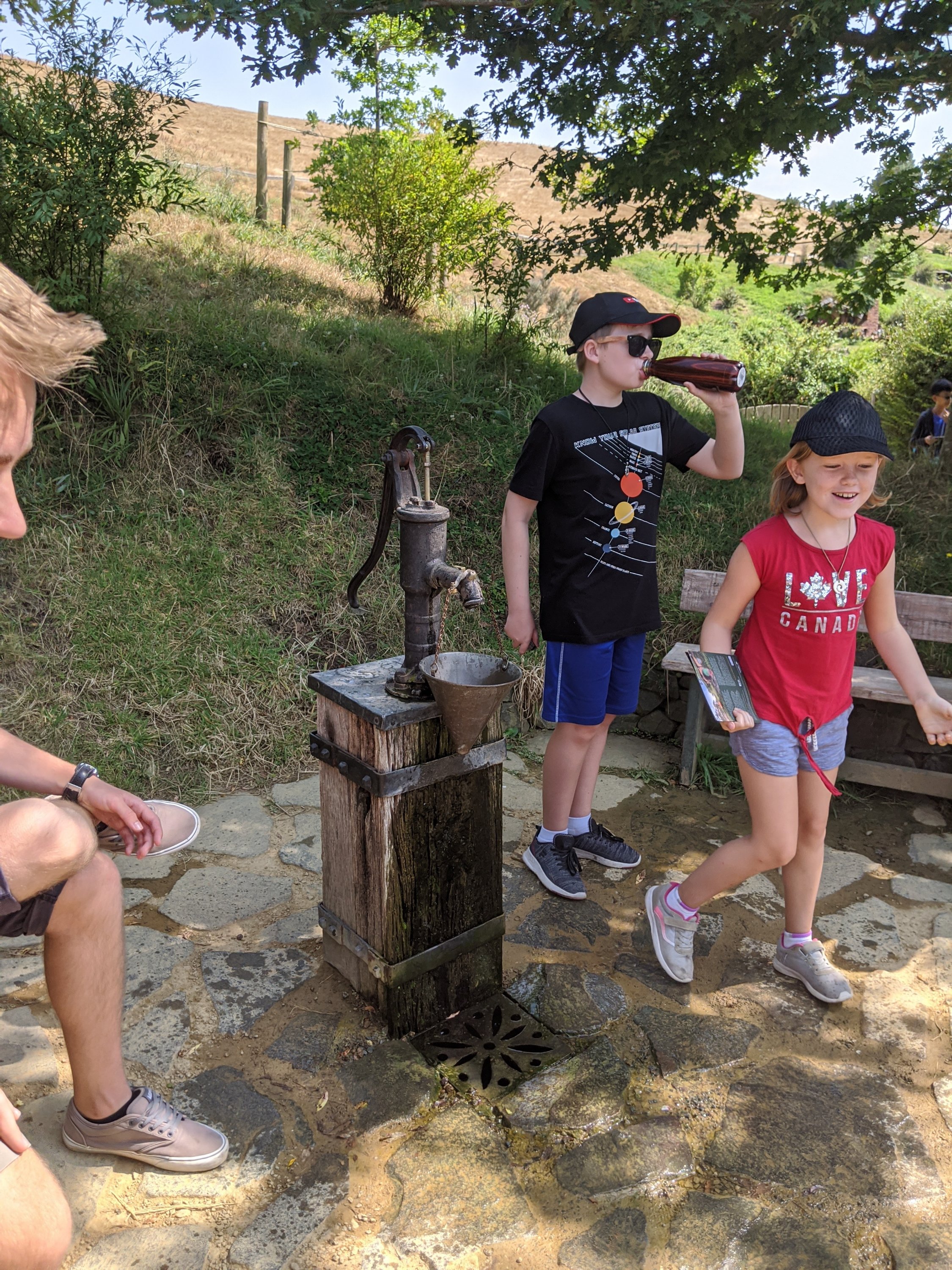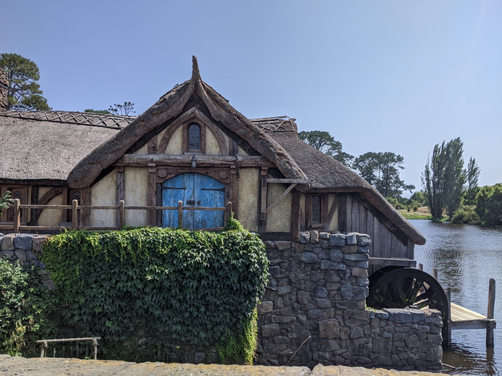Another thing we learned is that Peter Jackson, the director, first made Hobbiton out of fake materials to film The Lord of the Rings movies. Then they took it all down and left the farm. Later on, to make the Hobbit movies, he decided to redo Hobbiton out of real building materials, so that it could be permanent.