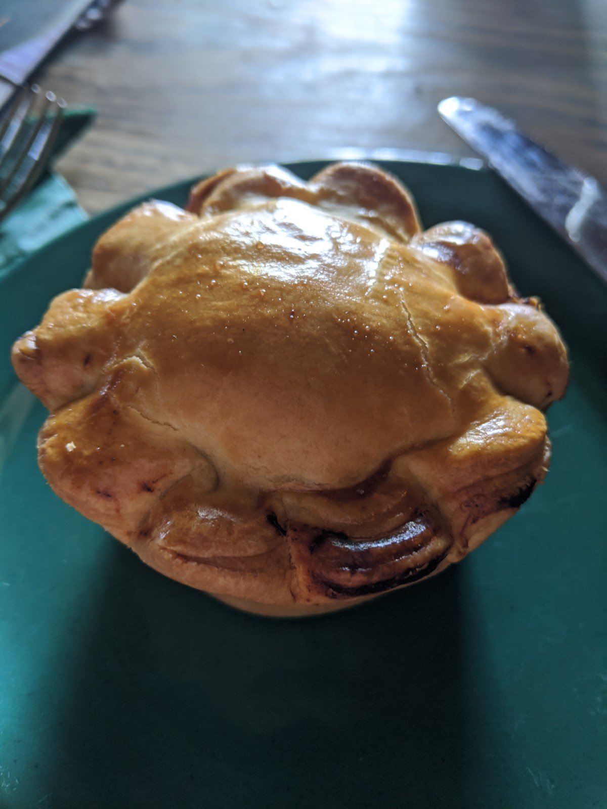 At the end of the tour, we also went to a restaurant called The Green Dragon Inn where I got non alcoholic ginger beer while Mom got cider and Dad got regular beer and we got a scone and a meat pie to share. Then after that we took a bus back to our campervan.