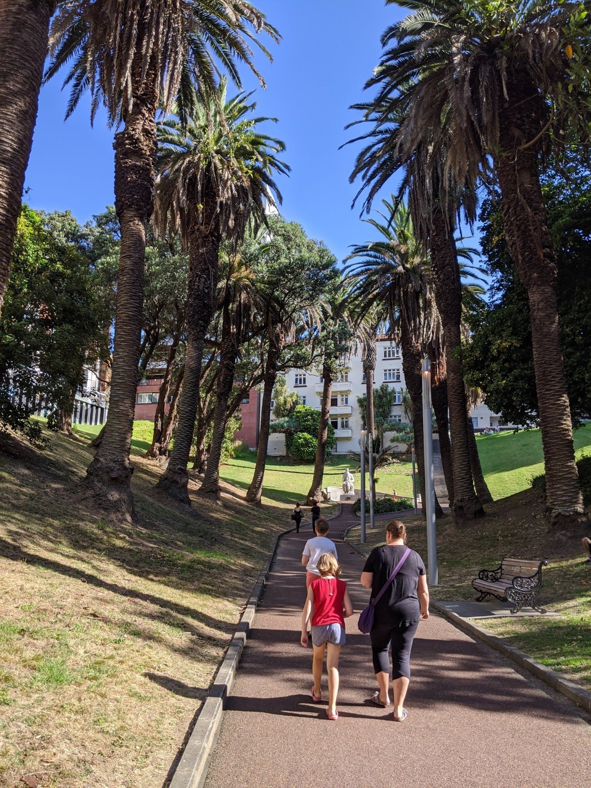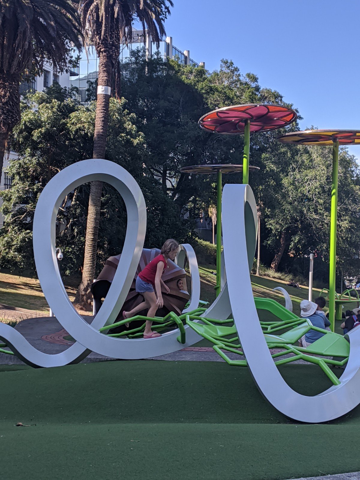 Then we went to go explore the neighborhood. We went into a park through a mall, where we saw lots of palm trees. It also had a really cool park with great climbers that I played on for a while.