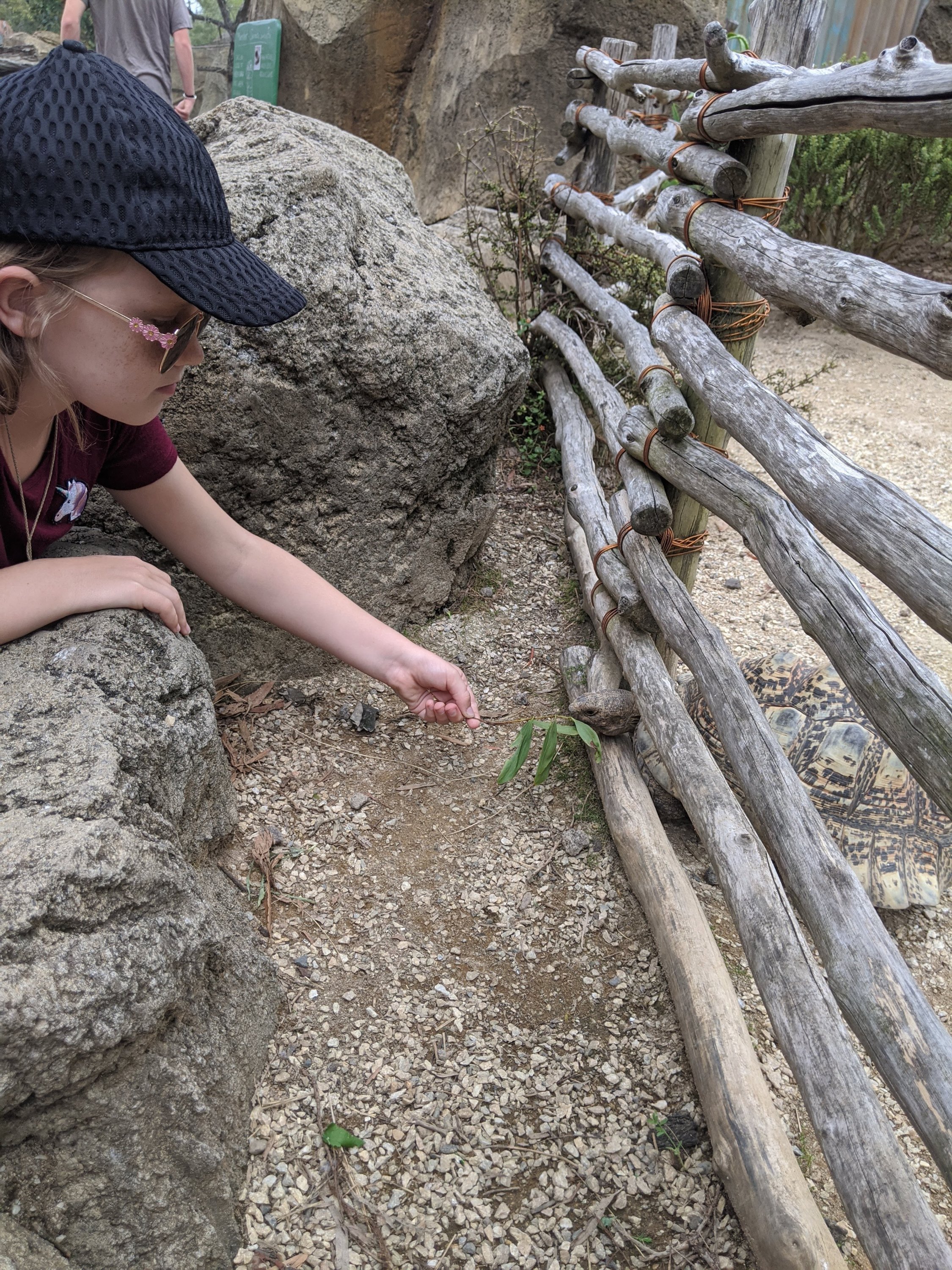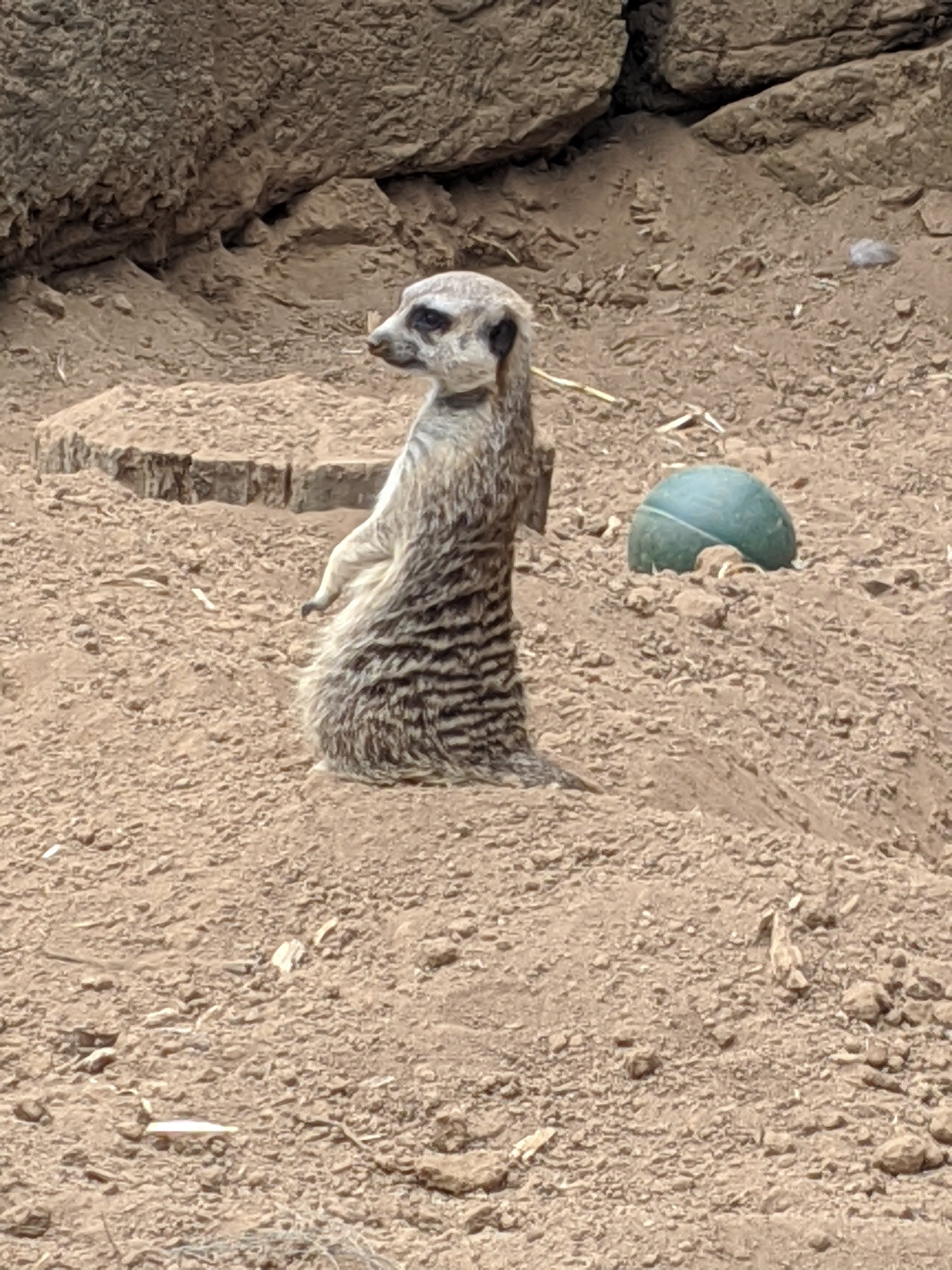 The meerkat exhibit was two parts with a tunnel under the path to travel from one to the other and mom got a hilarious picture of one smiling at her.