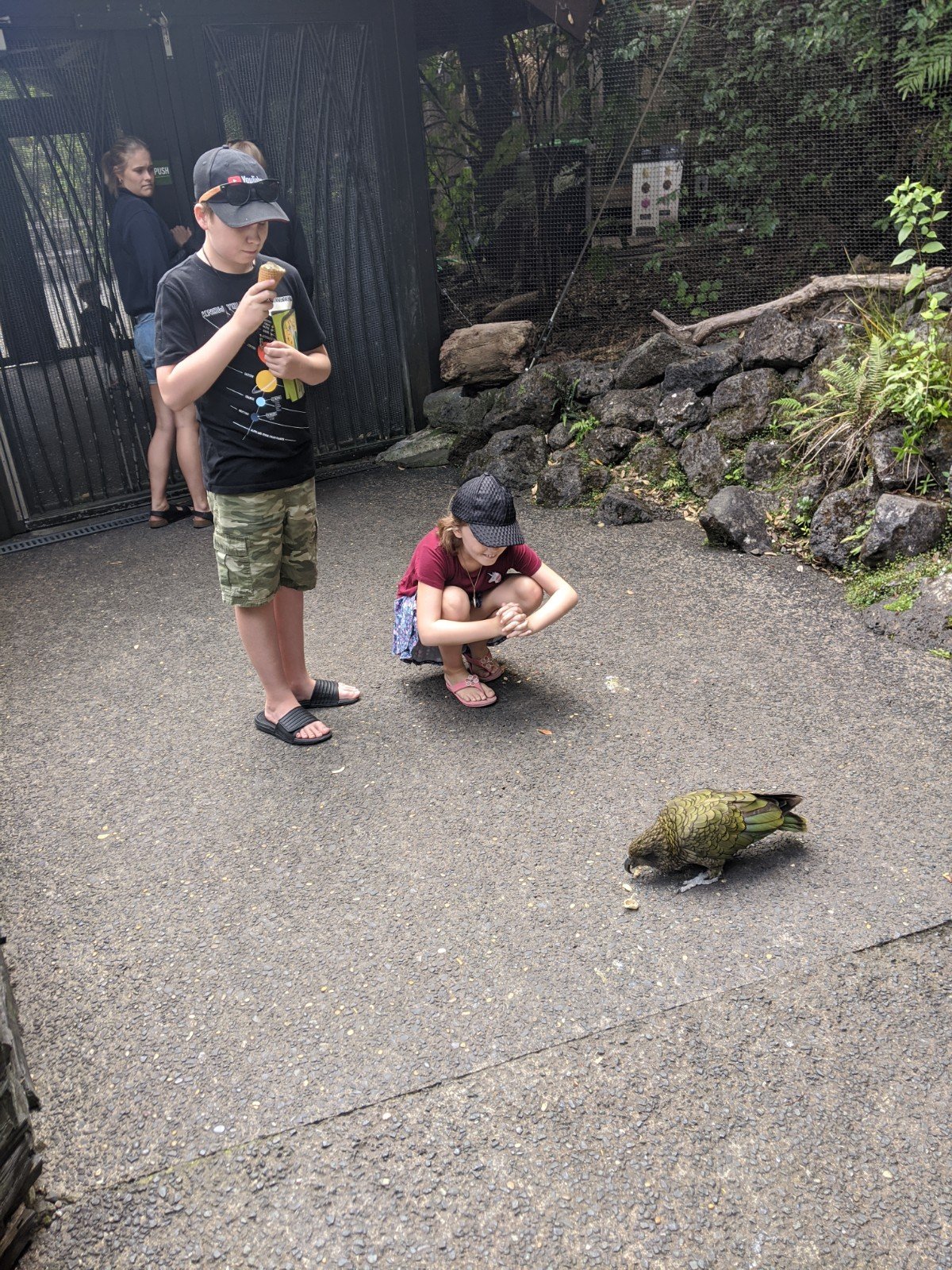 We also got to see Keas close up. There were three of them. We went to a zookeeper talk about them. We learned that they are as smart as a four-year old child. They all jumped from rock to rock on command for a treat. The youngest one was really cheeky because he kept stealing the treats.